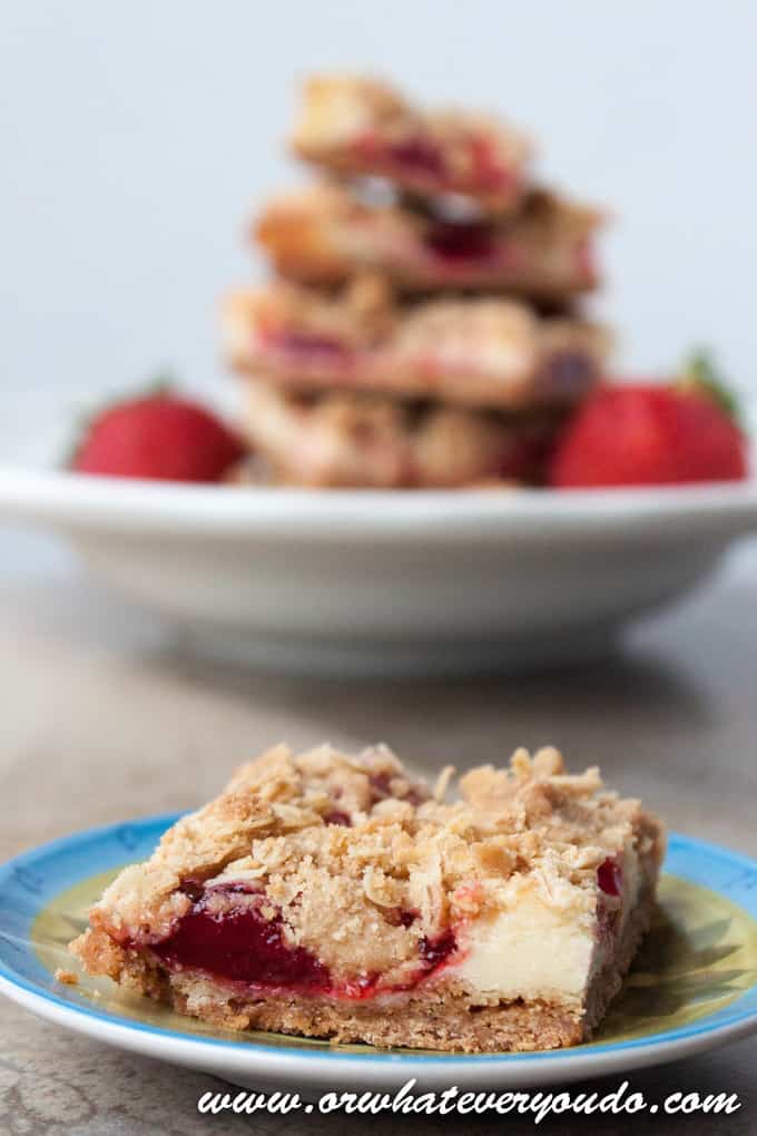 […] Page 2 ~ Get the recipe for Strawberry Cheesecake Crumble Bars | OrWhateverYouDo.com […]