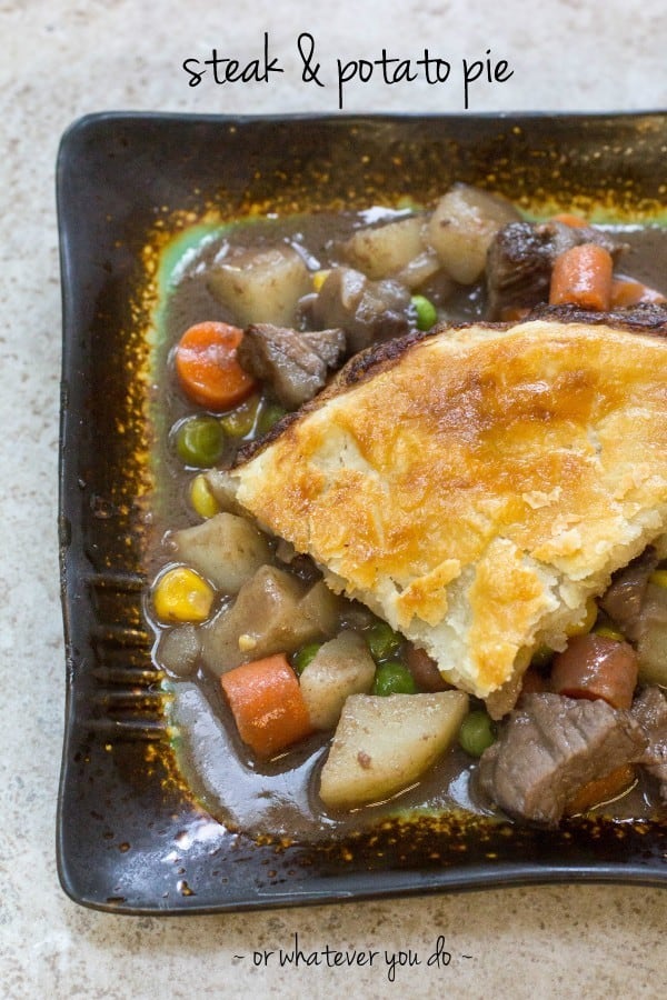 I am SO GLAD that we were out of mushrooms! This steak and potato pie was so incredible. I finally figured out my pie crust, which has plagued me for years, and things just seemed to come together. I love it when that happens.
