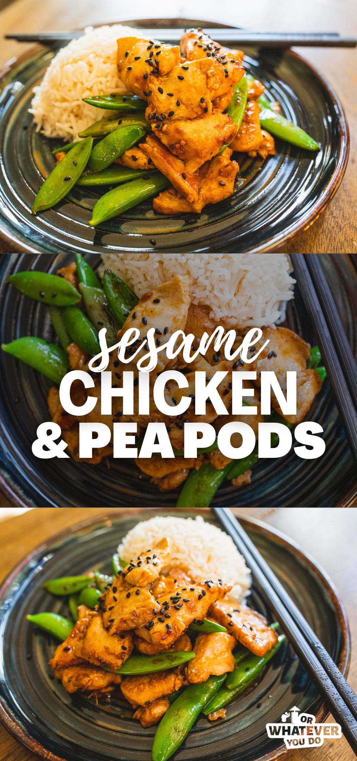 Easy sesame chicken with pea pods is a perfect weeknight meal! Full of big Asian flavors and vegetables, and comes together so quickly! We love this simple stir-fry.