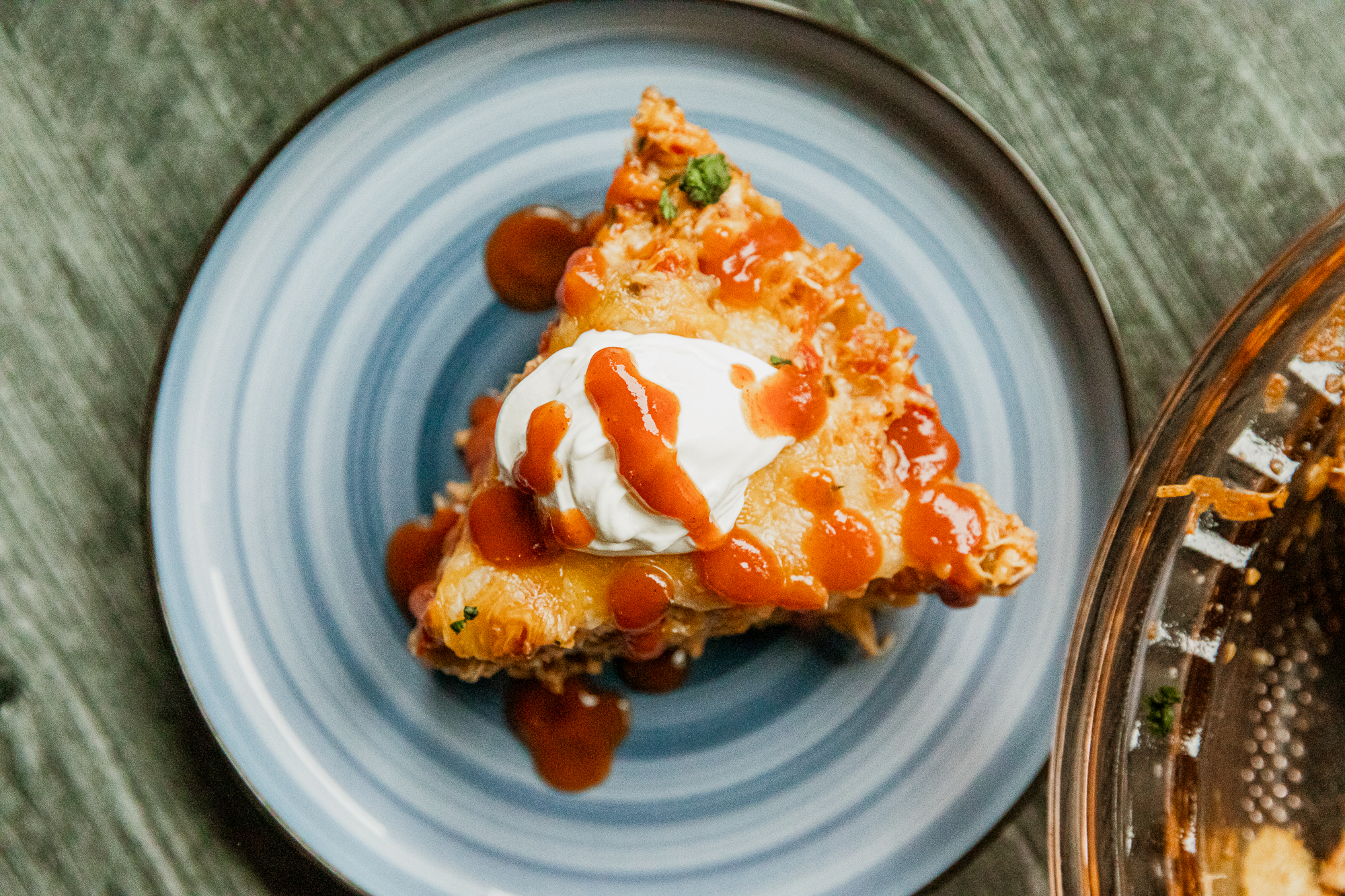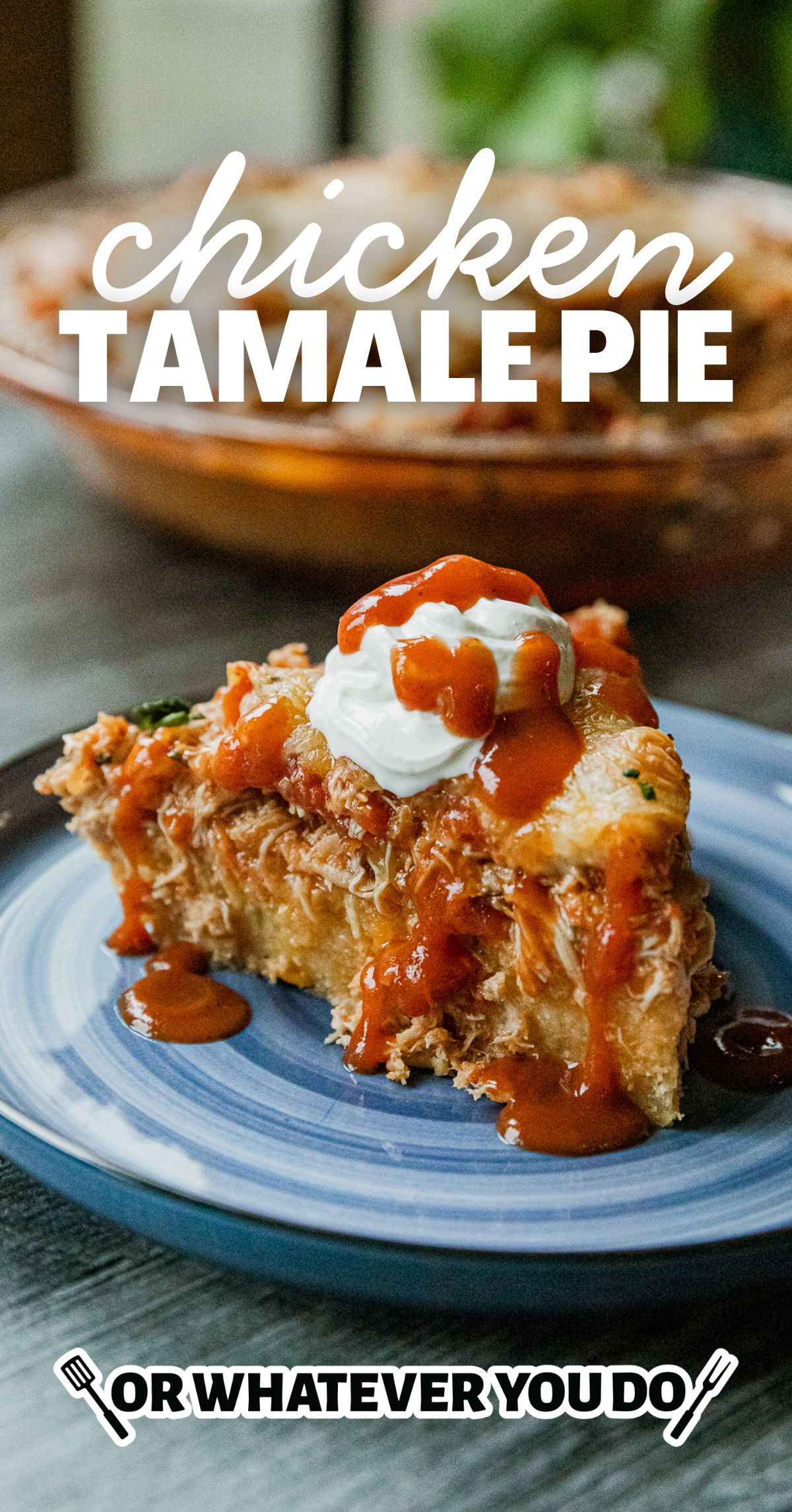Chicken Tamale Pie uses an easy pre-baked tamale-style base, and then gets loaded with spicy, flavorful shredded chicken thighs. Topped with cheese and all of your favorite fixings, this is the perfect taco night change-up!