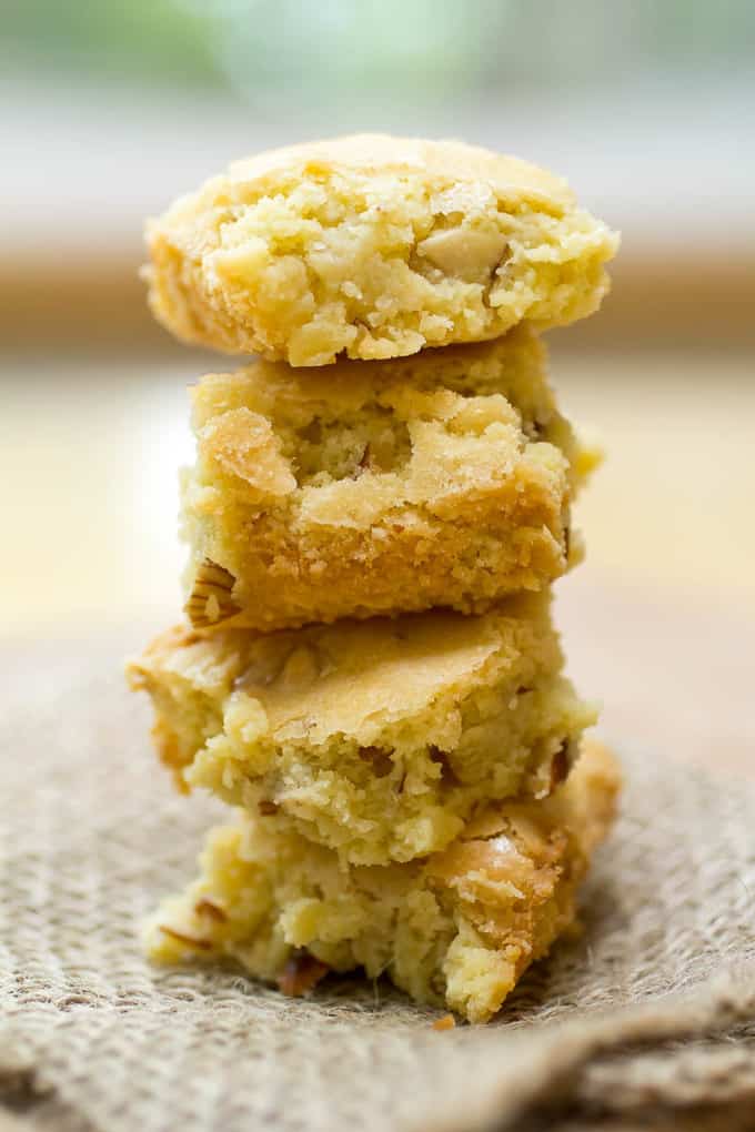 This simple recipe is made with almonds and pantry staple ingredients. They are so tender and have the perfect buttery crumb. I love these bars!