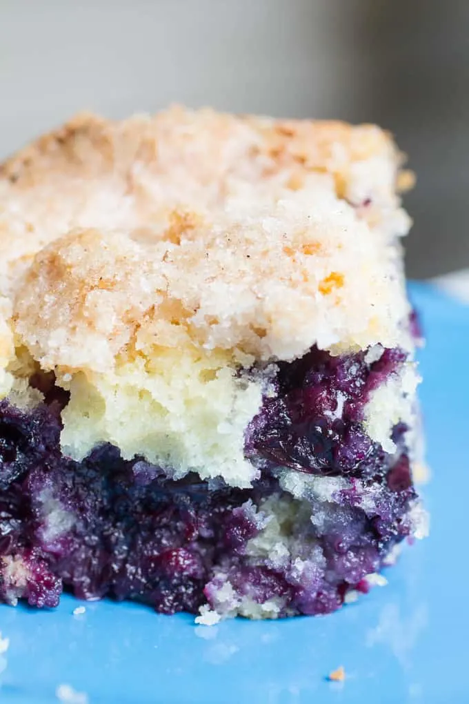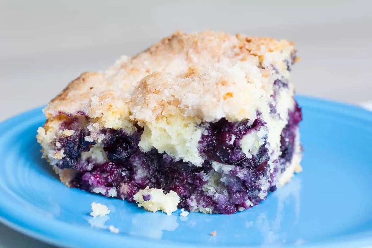 You’ll want to use fresh blueberries if you can. They hold their shape better in the batter and don’t bleed like frozen ones tend to. That pop of flavor paired with tangy sour cream and lemon is spot on.