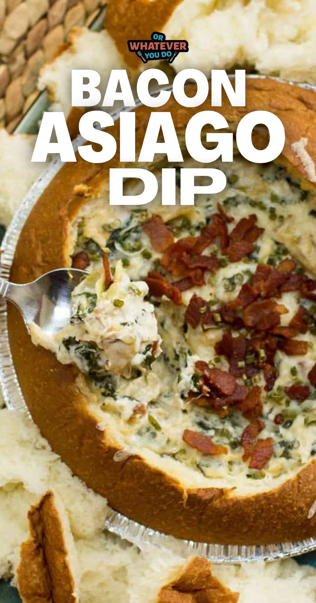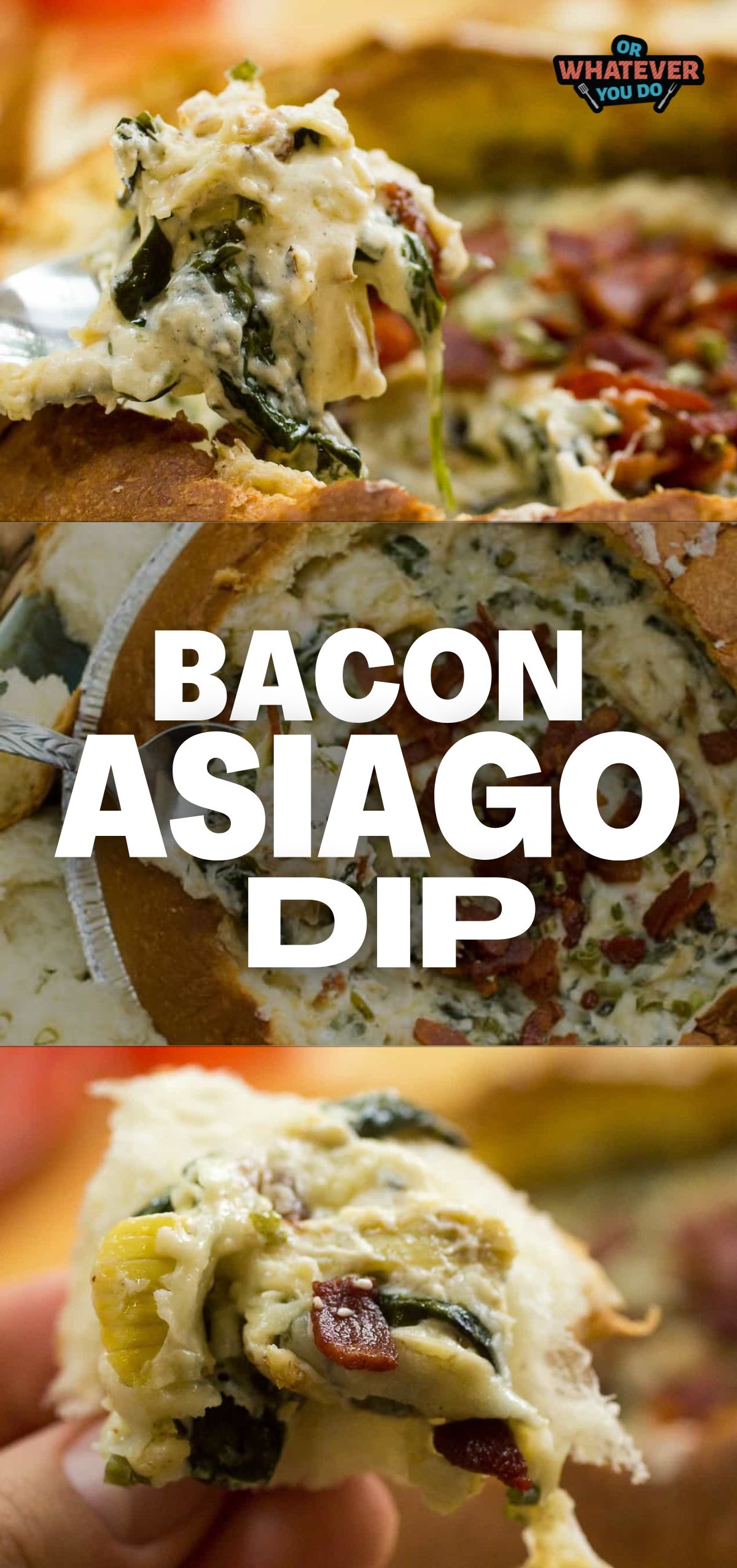 This Bacon Asiago Dip is totally worth the mouthful it takes to say it! It's loaded with flavor, contains NO MAYO, and is made with simple ingredients. Make this your holiday appetizer table centerpiece and you'll have a lot of really happy guests!