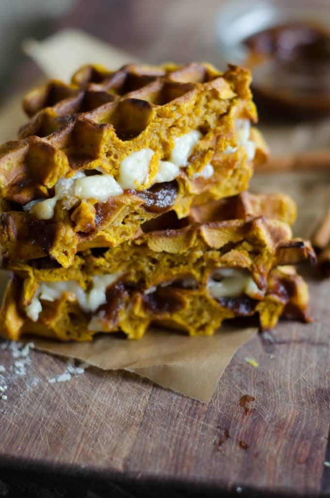 Pumpkin Waffle Sandwiches with Apple Butter and Melted Brie Go Go Go Gourmet