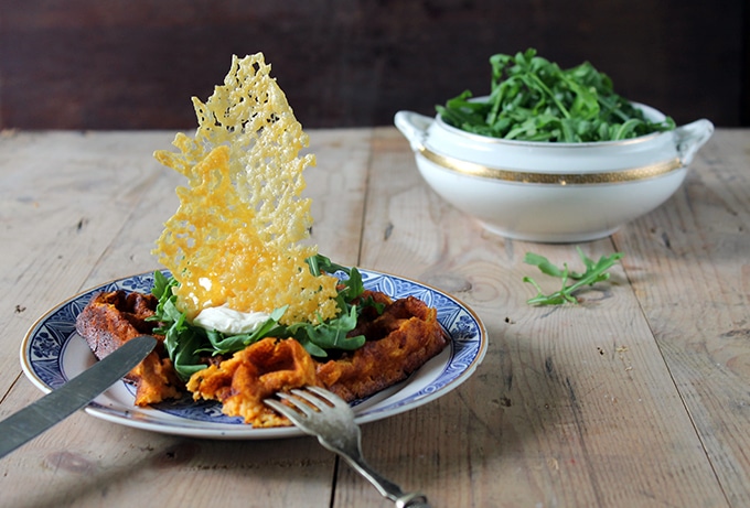 Sweet Potato Waffles with Cheese Shards