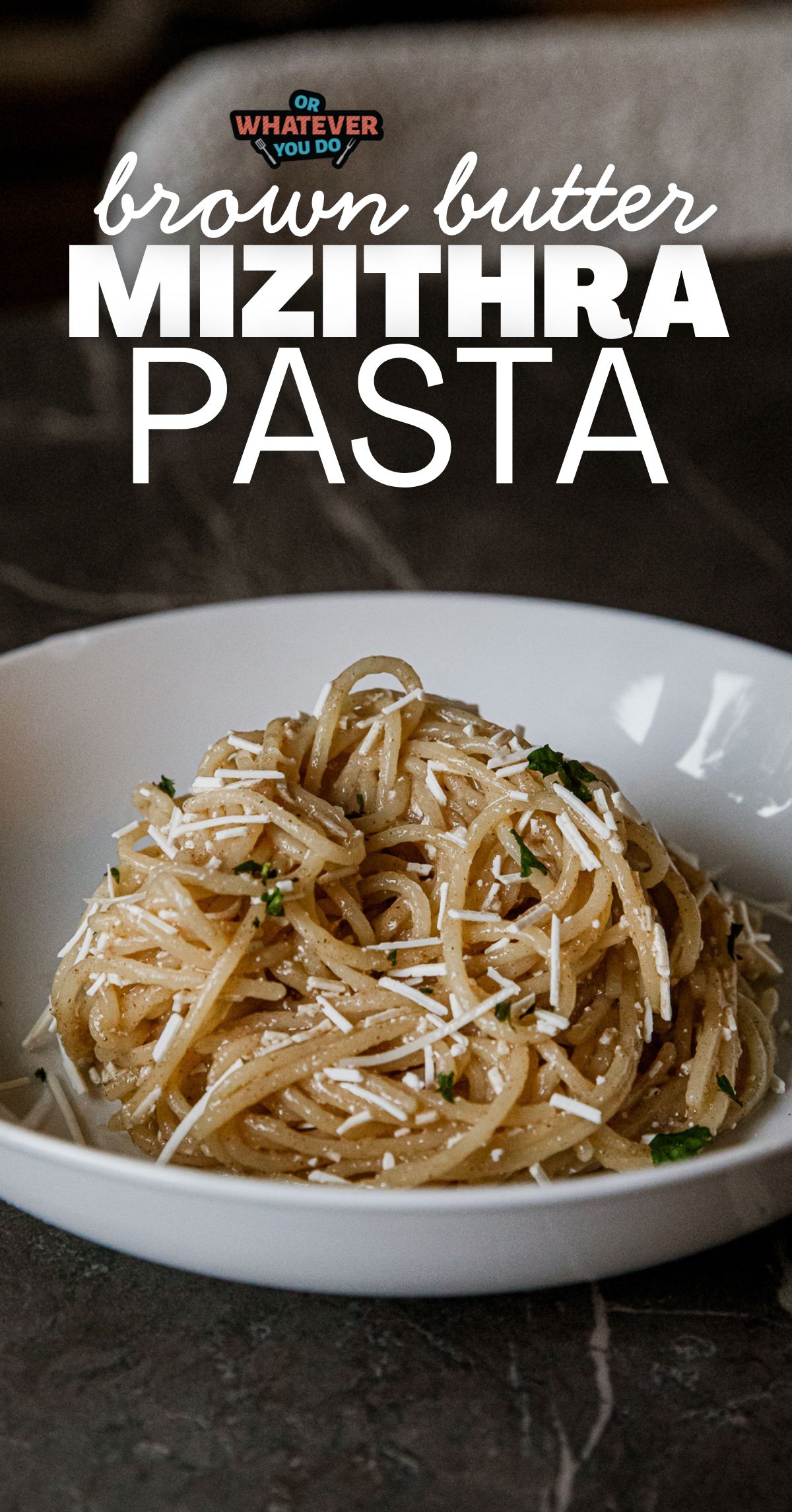 - Toss fully drained pasta with the browned butter and shredded mizithra cheese. Salt to taste. Mix in fresh herbs that complement your main dish last, if you are going that route.