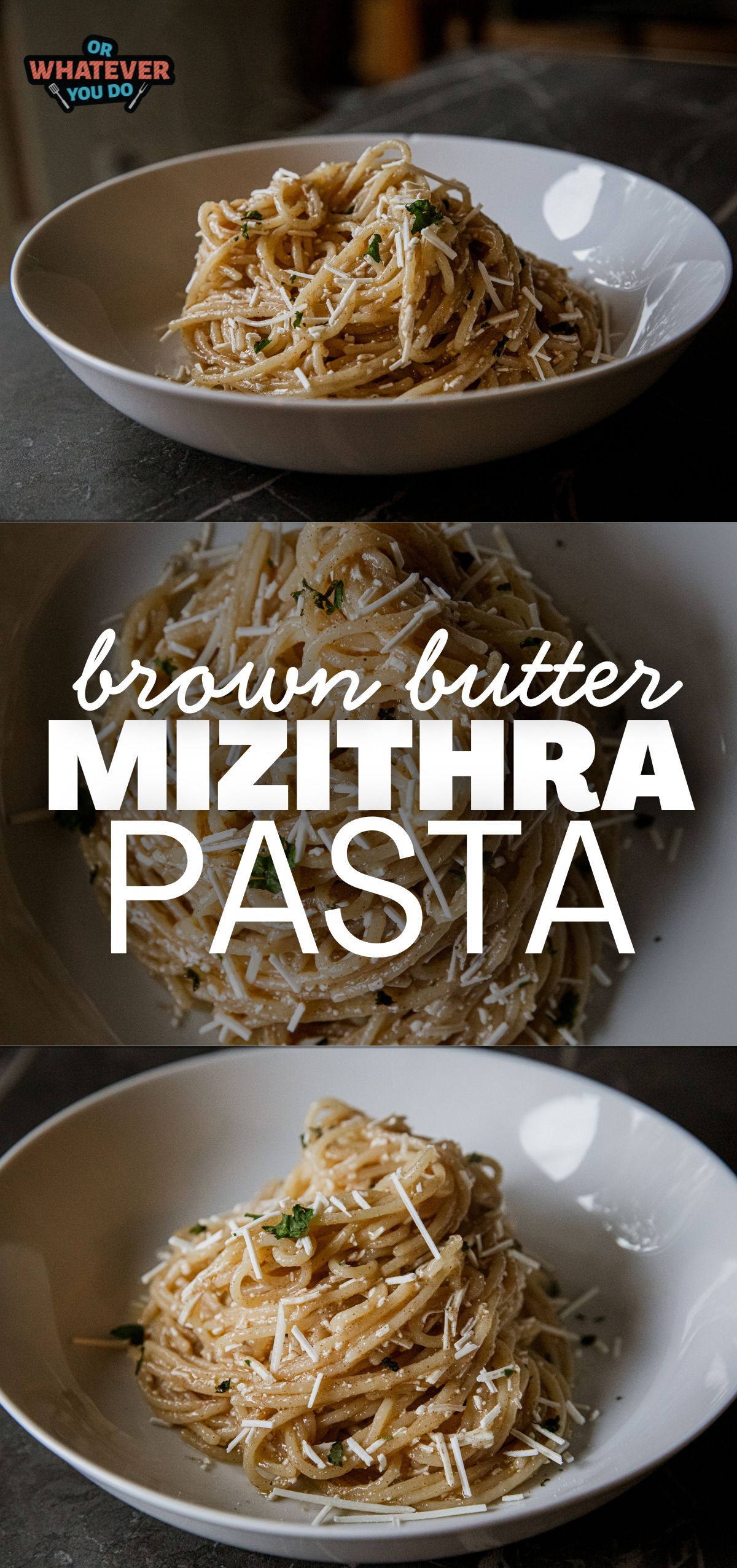 This delicious and simple pasta side features the nutty rich flavor of browned butter coupled with the unique flavor of mizithra cheese.
