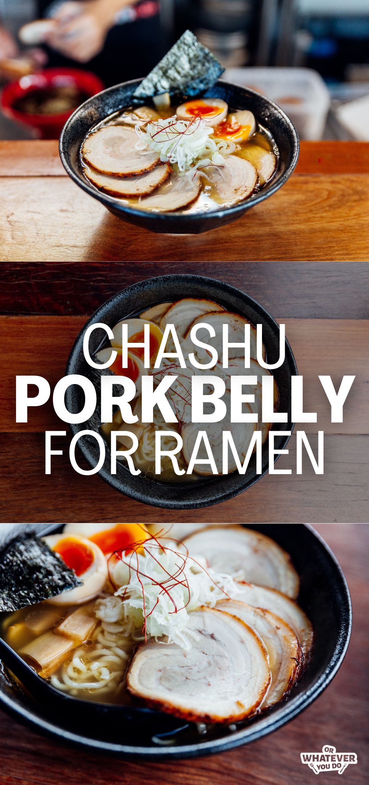 Chashu Pork is a tender, melt-in-your-mouth marinated and rolled pork belly that is braised in a super flavorful mix of sweetened soy sauce and is a traditional topping for your ramen.