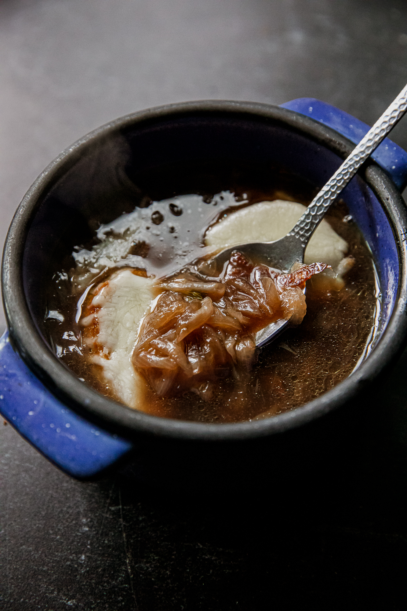This French onion soup is rich, cozy, and everything you want on a cold night. Caramelized onions simmered in a mix of beef and chicken stock, layered with wine and a touch of thyme, then finished with a toasted slice of baguette and melty aged Swiss cheese. It's the kind of soup that feels fancy but is easy enough for any weekend.