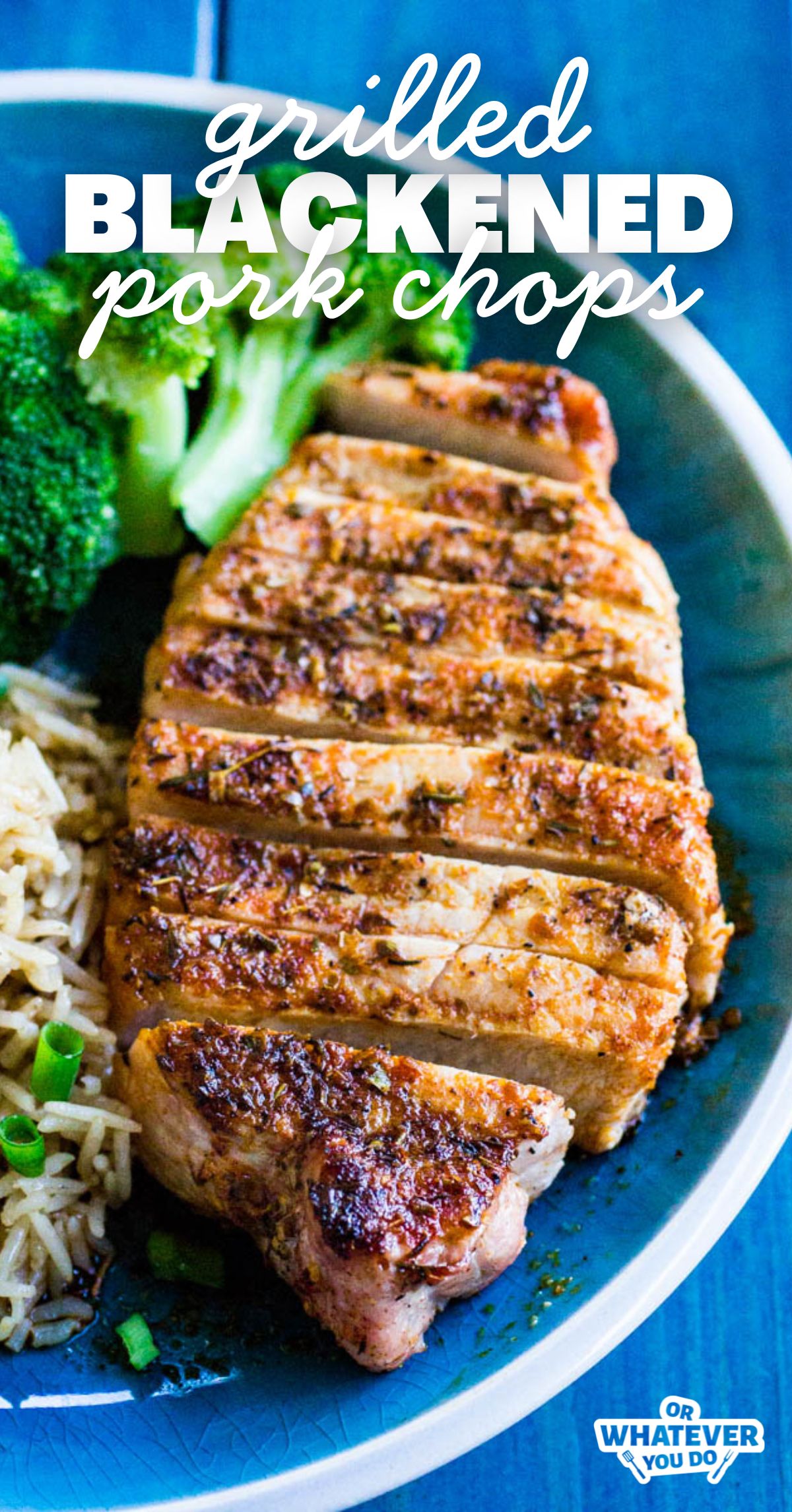 Delicious blackened pork chops cooked on the Traeger grill! These are juicy, flavorful, and delicious.