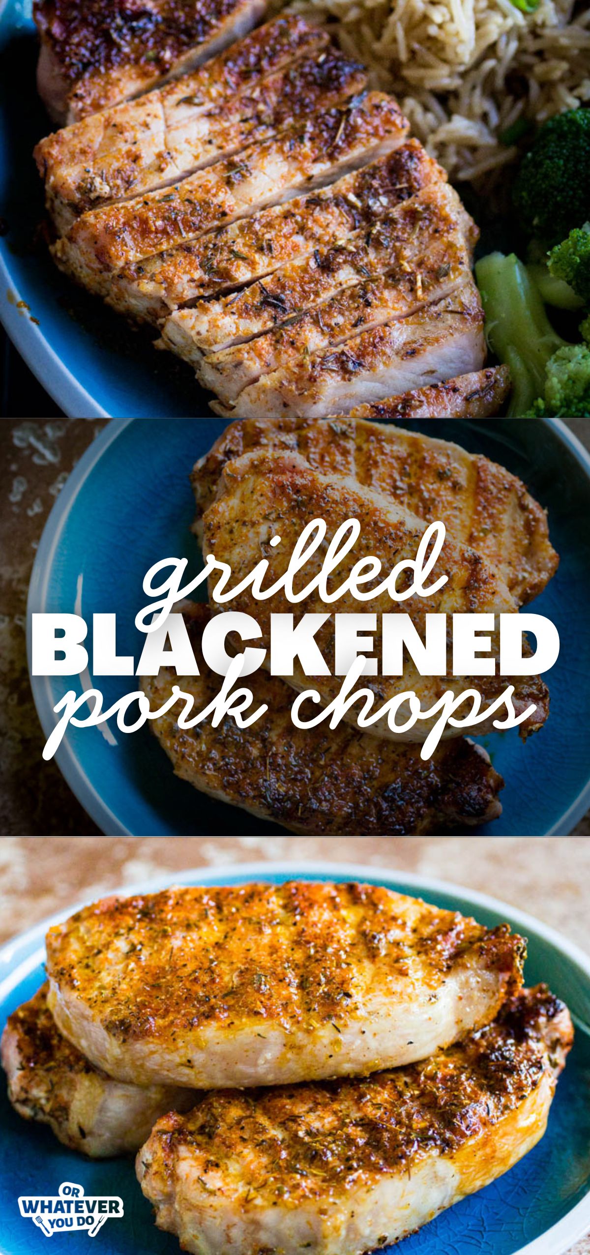- Pat the pork chops dry. Season both sides generously with blackening seasoning, then lightly with salt and pepper.