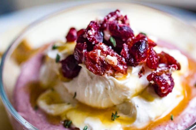 This delicious whipped goat cheese spread has a honey-sweetened cranberry layer that is perfect for all of your upcoming gatherings!