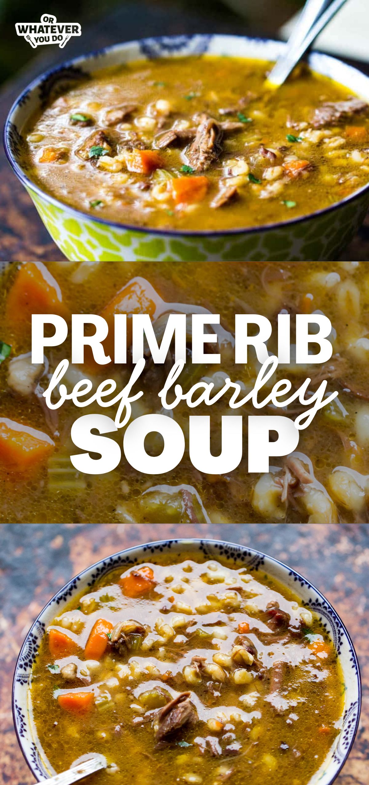 Shut out that cold weather and serve up a hearty bowl of this beef barley soup with prime rib. Tender bits of prime rib, hearty barley, paired complimentary vegetables for one delicious bowl of soup.