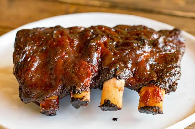 - Ribs are done when they are tender! – Keep an eye during the process. Depending on the size and composition of your ribs, they might be ready sooner or later than the times called for here. Pay attention to the meat, and pull once it is fork-tender. When it is getting close, baste with sauce for the last hour.