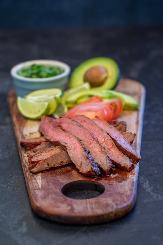 - Remove from the grill and let rest for 10-15 minutes. Slice across the grain, and serve with tortillas and taco fixings.