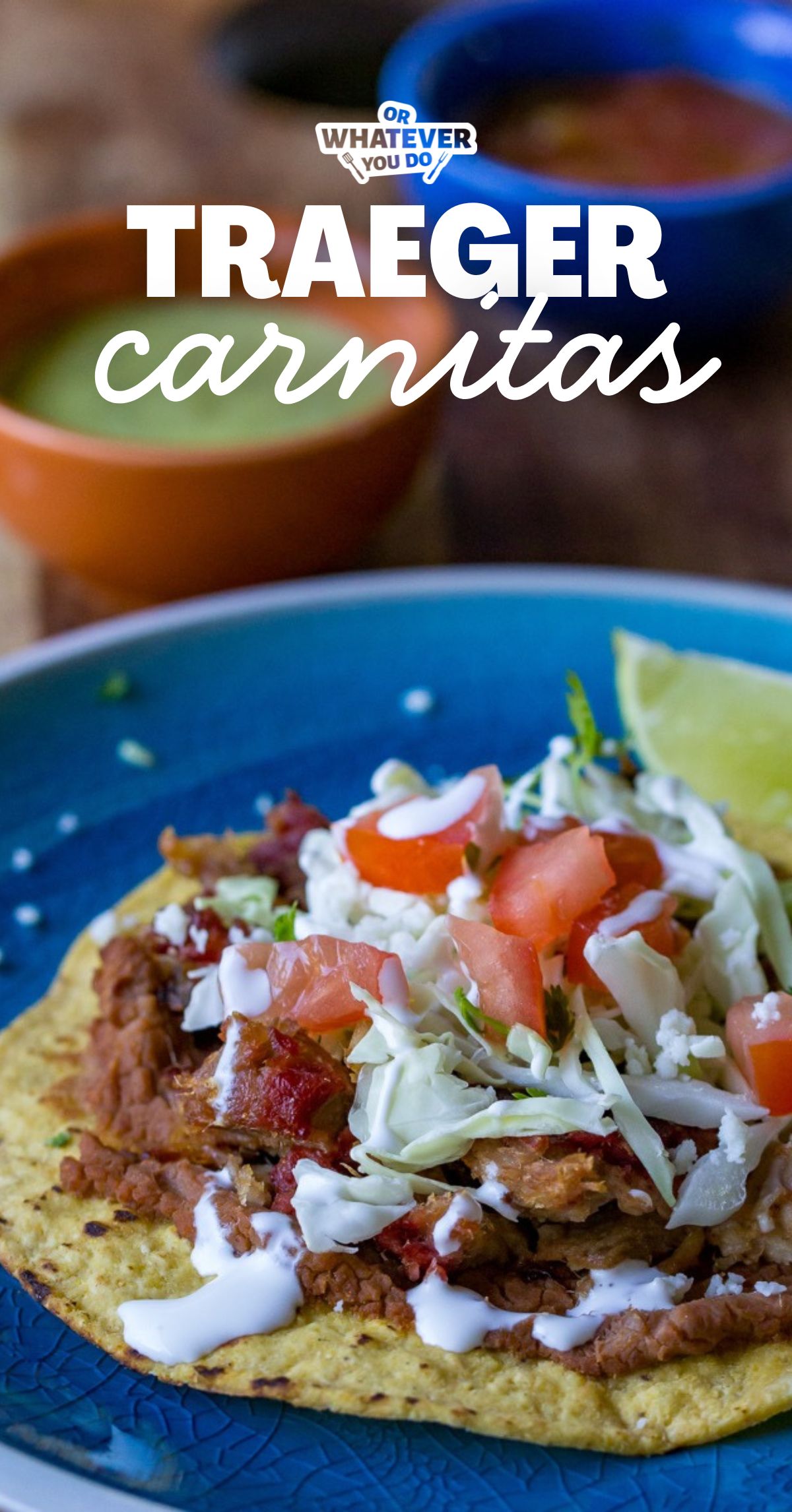 These Traeger Carnitas are what taco dreams are made of. You start with a well-seasoned pork shoulder roast, smoke it low and slow right on your pellet grill, and finish it off on a hot griddle or cast iron to crisp up the edges.