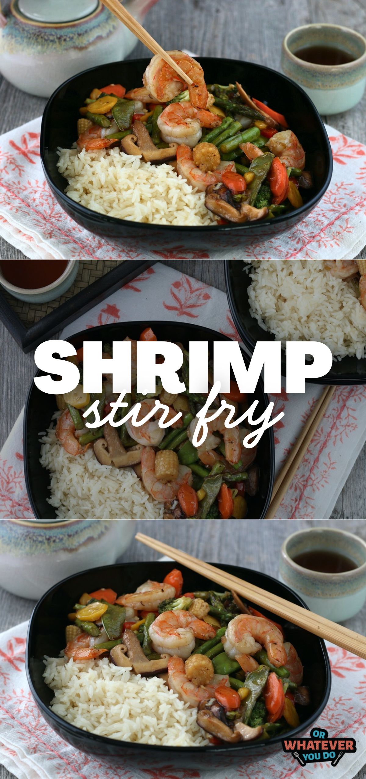 This easy shrimp stir fry is packed with vegetables, cooks in about 20 minutes, and is a crowd-pleaser. Even my kids eat their vegetables when they are coated in this bold soy-based stir fry sauce!