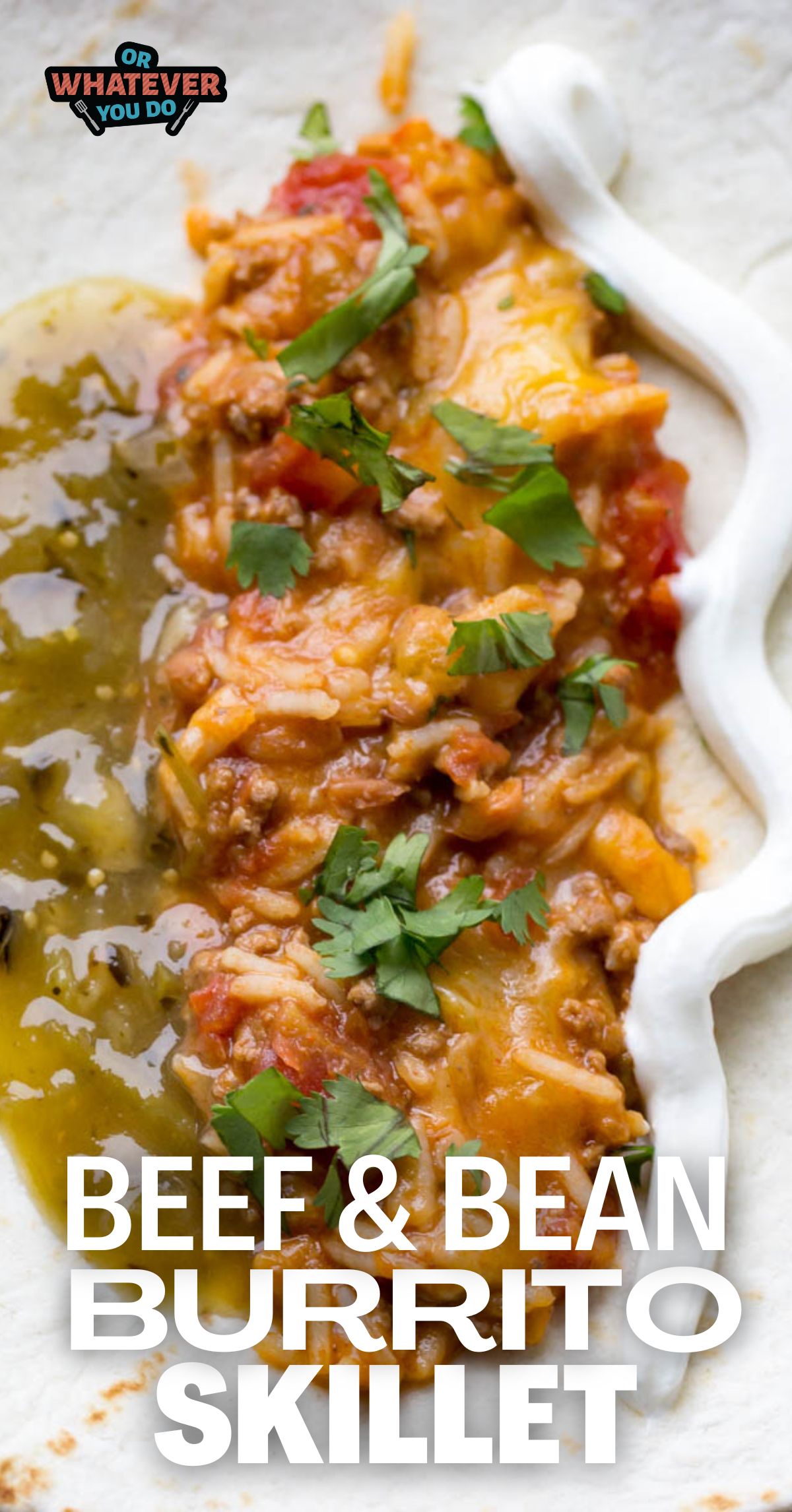 A Beef and Bean Burrito Skillet hits all the right spots. A little bit beefy, a little edge of spiciness, nice and filling, a beef and bean skillet just satisfies so deeply. Can’t forget about all that melted cheese, either!