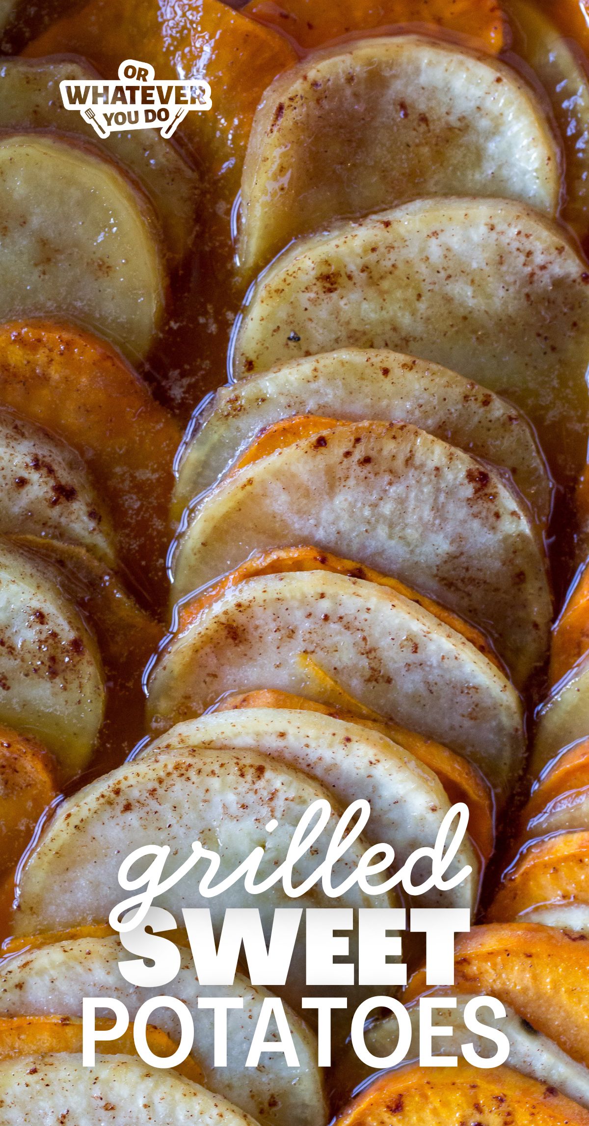 - Grill – Pour the sauce over the potatoes, sprinkle with salt and cinnamon, cover with foil, and grill for 30 minutes. Remove foil and grill for another 15–30 minutes until caramelized and tender.