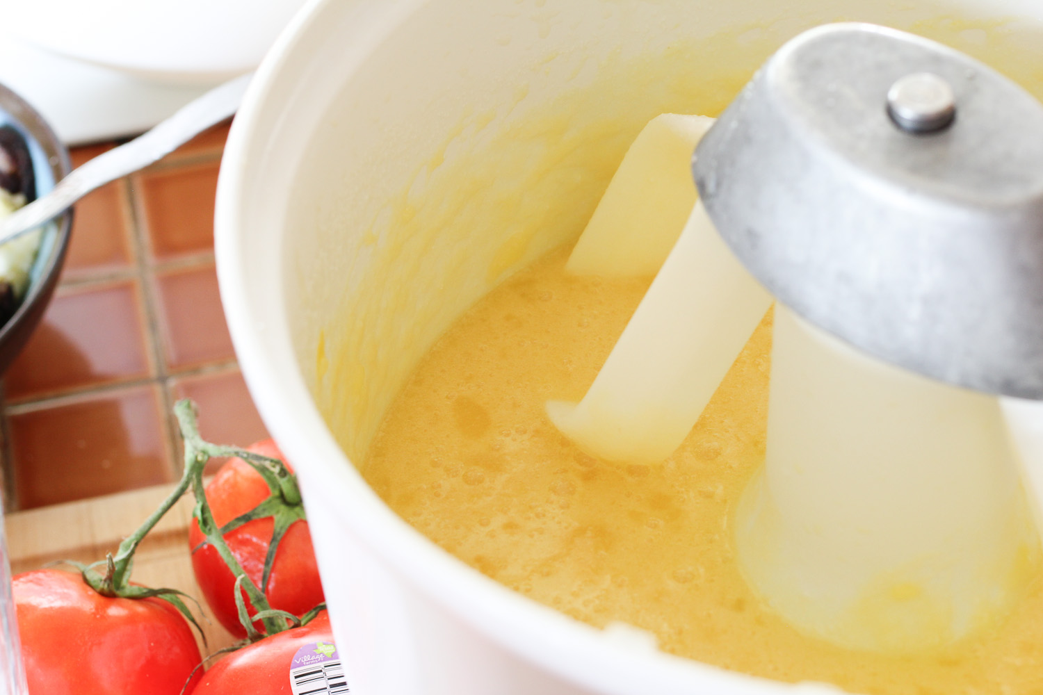 - Pour the egg mixture into the dry mixture and stir gently to combine. When the mixture is almost ready, add in the melted butter and honey.