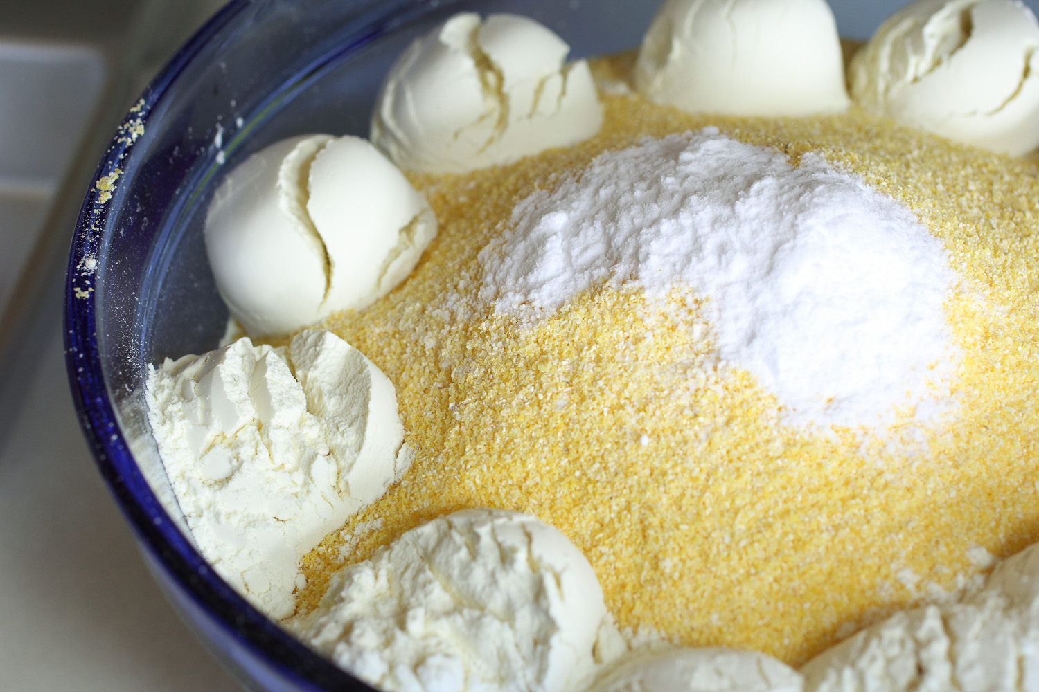 - Mix Dry Ingredients – Whisk cornmeal, flour, sugar, baking powder, and salt in a large bowl.