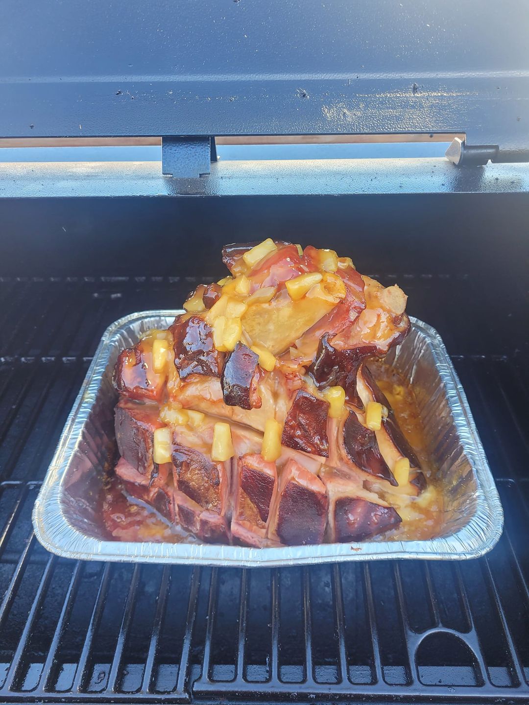 "I used this pineapple glaze recipe and it was awesome. Kept the temp low at 200° and smoked for 6 hours. Fed my entire extended family with leftovers for days."