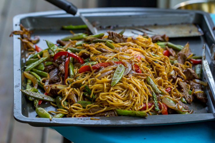 Yakisoba is a popular dish that the gas griddle is perfect for. It gets hotter than your stove inside, so you can a more authentic wok-like experience right at home.