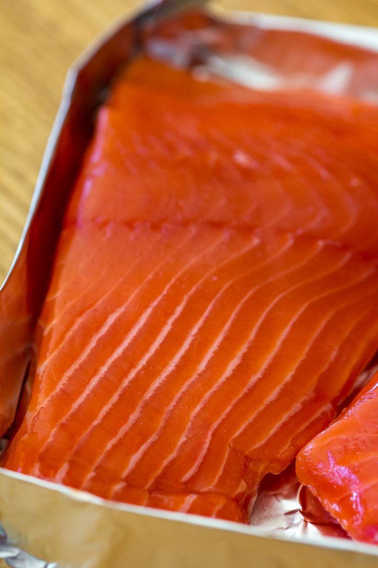 If you live in a place where you have access to fresh salmon, get some; if you don’t, try and look for sources where the salmon isn’t farmed. Farmed salmon is fed “pigmenting compounds” along with their food to give it the reddish-pink color of natural salmon. Otherwise, it would be white. At best. Or gray, at worst. Bleh.