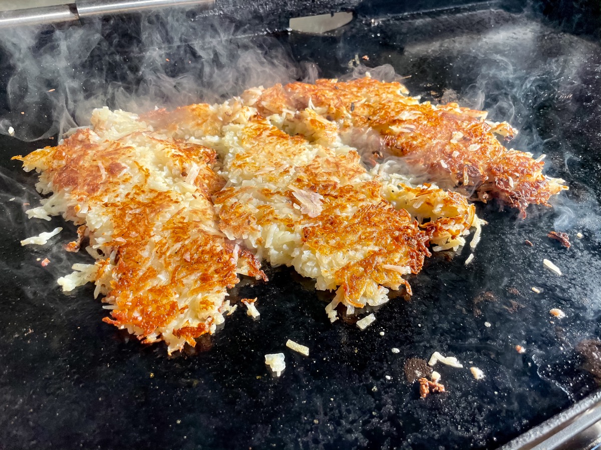The key to making great hash browns on the Blackstone is patience. And probably - turn down your heat.