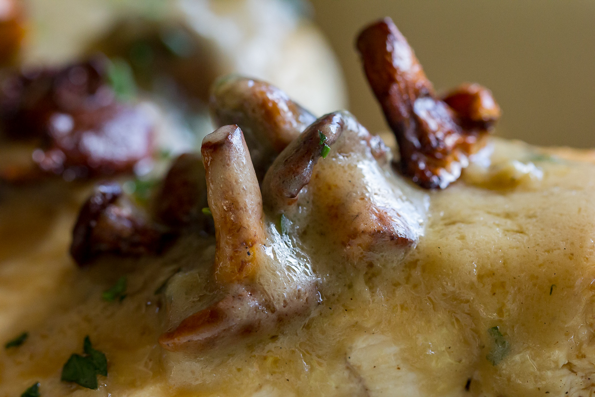 This buttery sauteed chicken is made on the Blackstone and then gets smothered with a mushroom gravy.