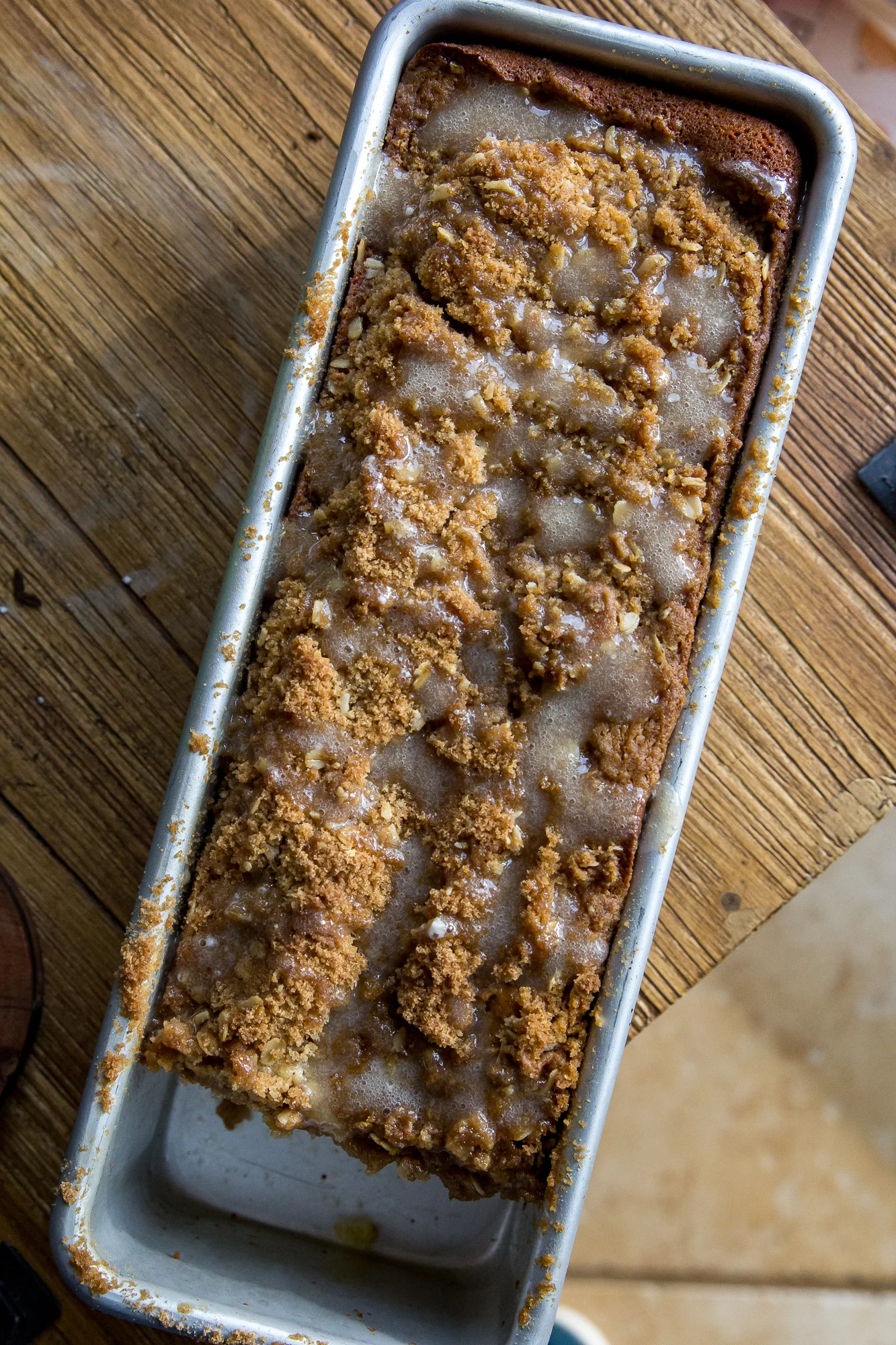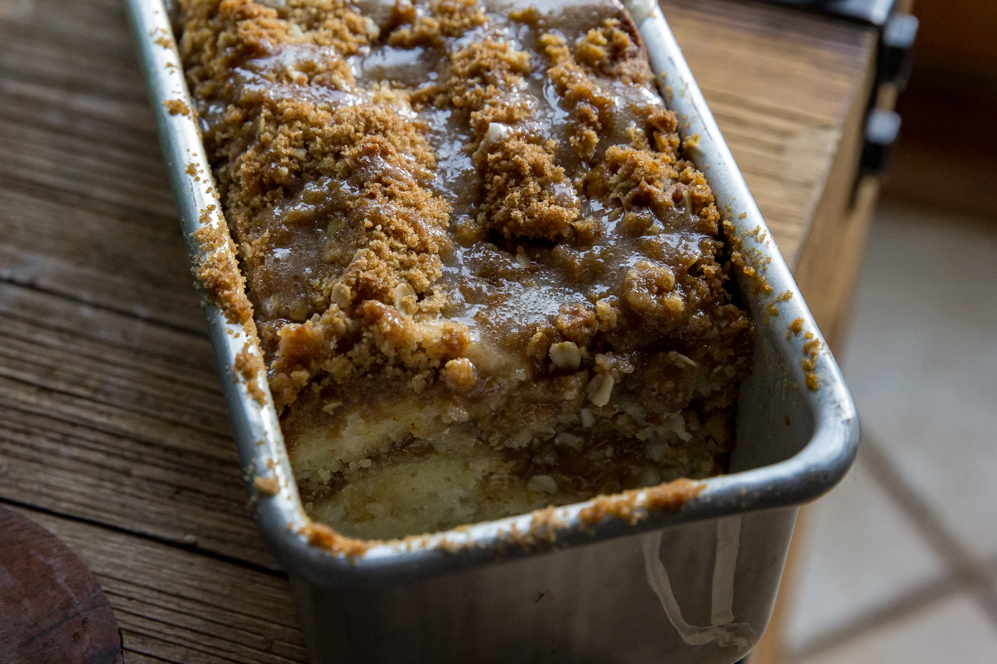 - Glaze it – The glaze is simple to mix up. You want to pour it onto the cake when it isn't piping hot, or it'll just disappear into the crumb topping. If you want it to be obvious, glaze it once the cake cools completely.