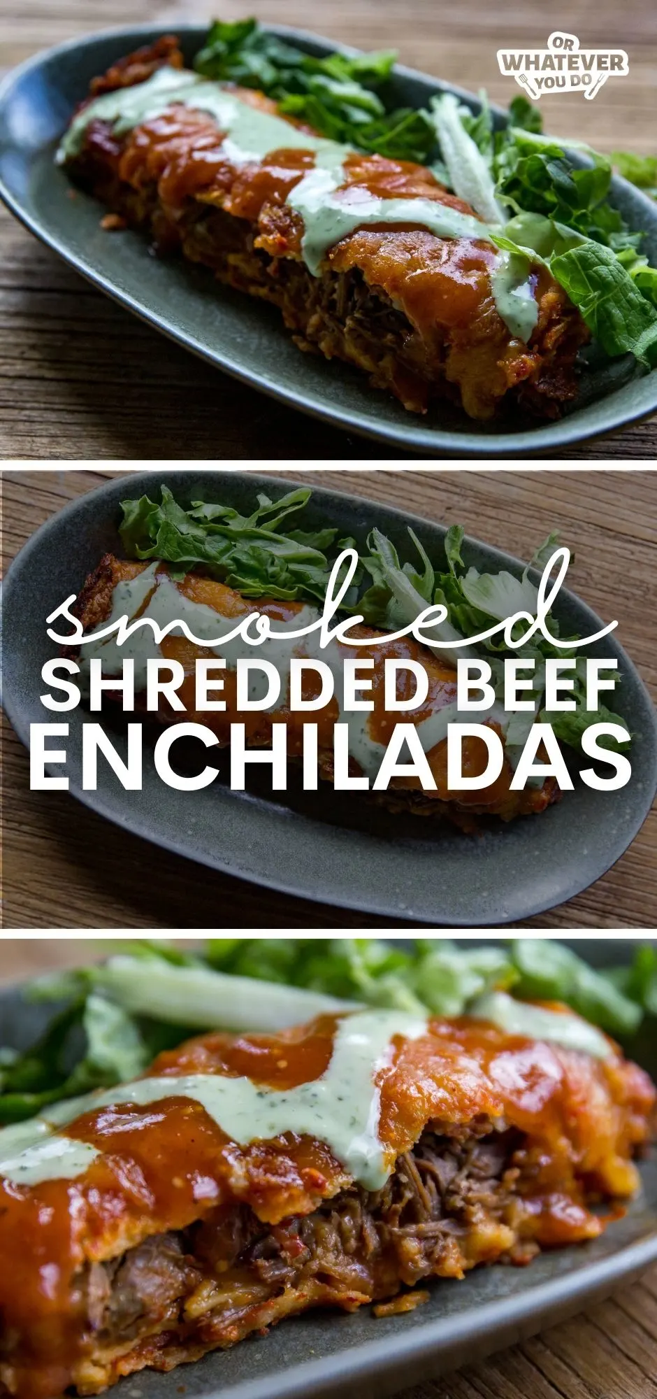 Yup! If you don’t have a smoker, you can still make amazing shredded beef enchiladas. Just skip the “smoke” portion and instead do a quick sear with the rub on all sides of your roast, and head right to the braising portion of things.