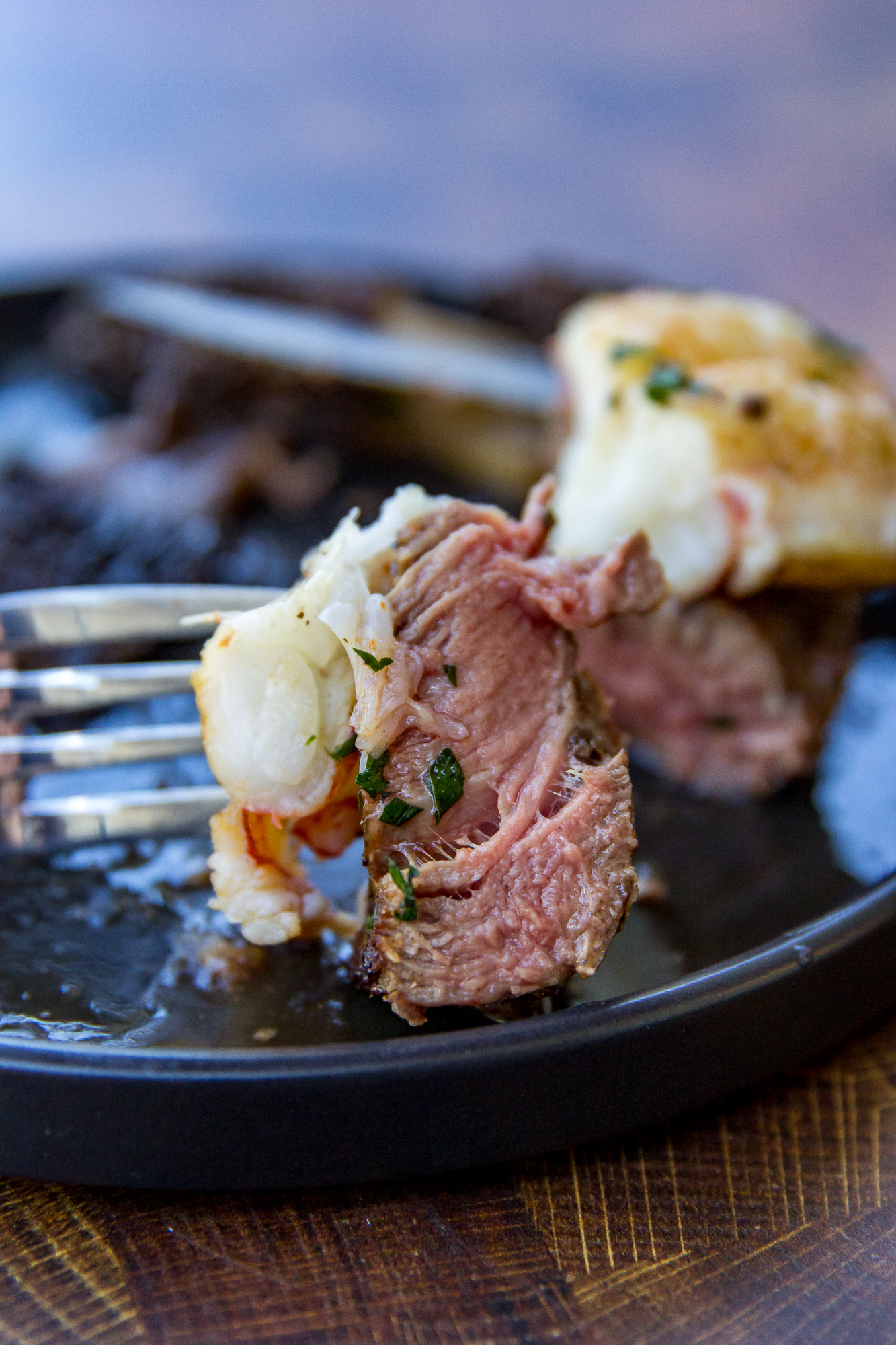 Treat yourself and/or someone you love to a fancy restaurant-quality meal right at home! Tender, beefy filet mignon. Buttery lobster tail right on top. Your person is going to be super impressed.