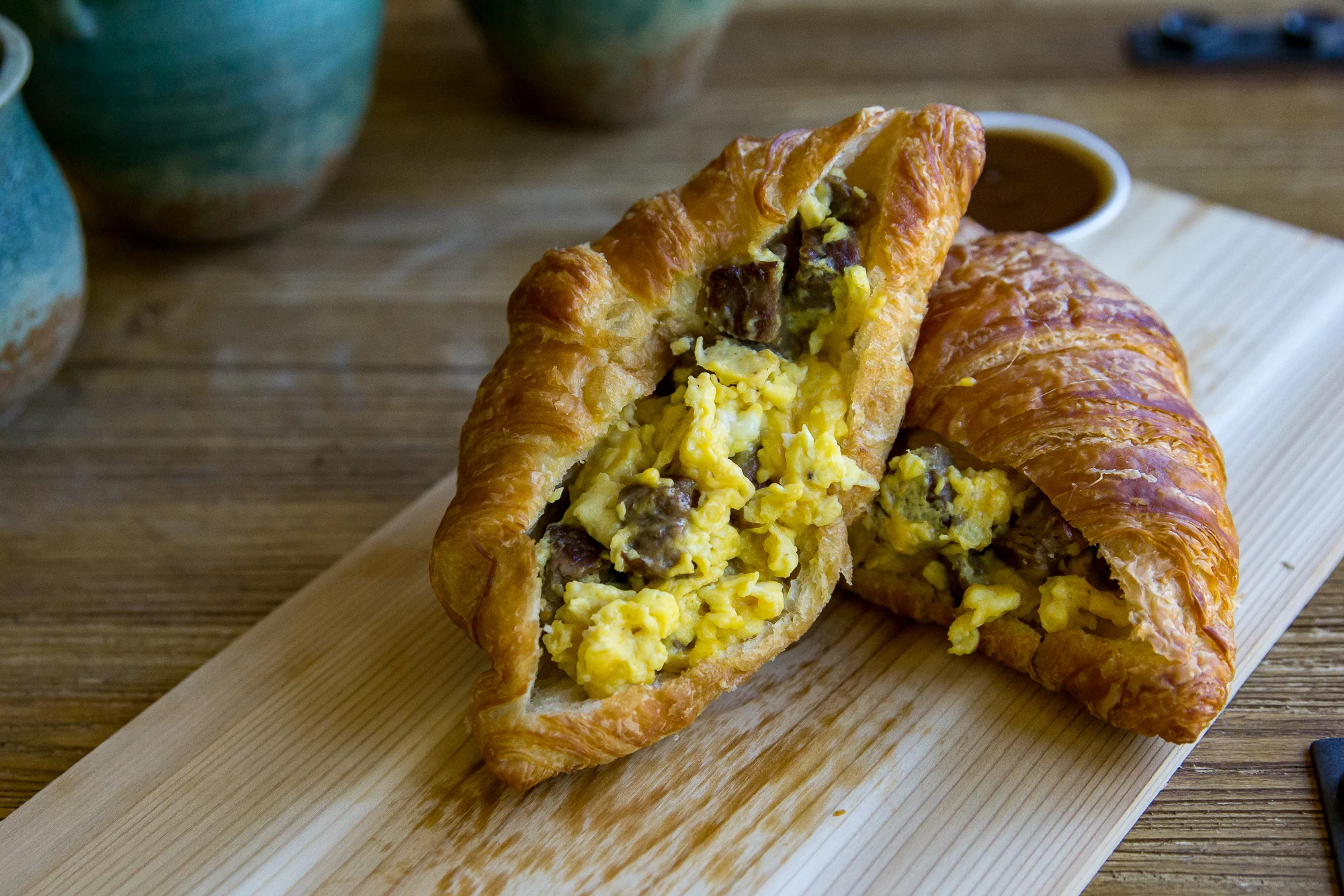 Breakfast Croissant with Steak, Egg, and Cheese