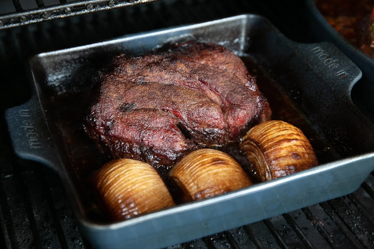 Our version fires up the pellet grill, copious amounts of red wine and beef broth, several onions, and time, love, and tenderness. Then, forget the soggy white bread, these hoagie rolls are built to stand up to all the cold cuts you can throw at it, so some tender beef and gravy? No problem.