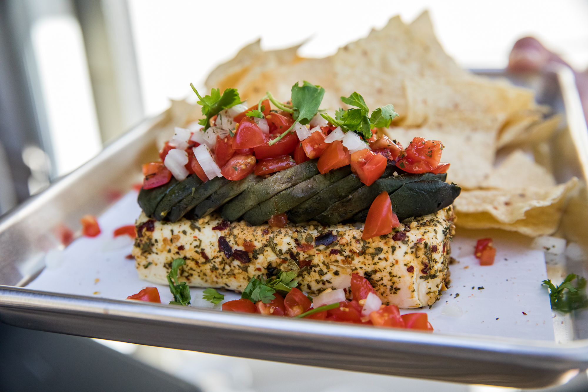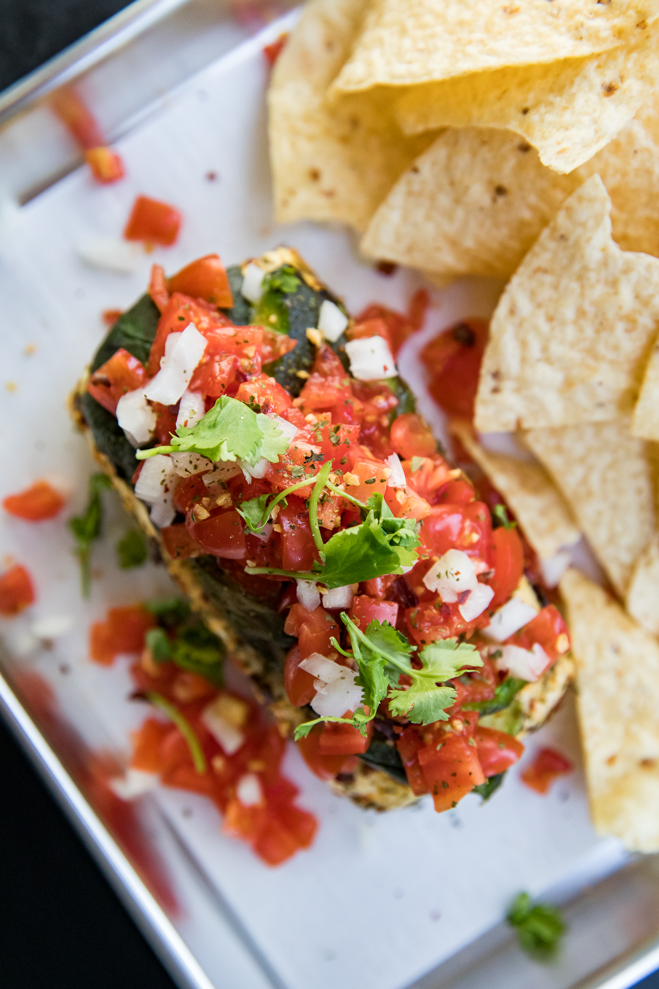 - Remove from the grill and squeeze lime over the cream cheese. Top with diced tomato, onion, and cilantro. Pico de gallo also works well for this.