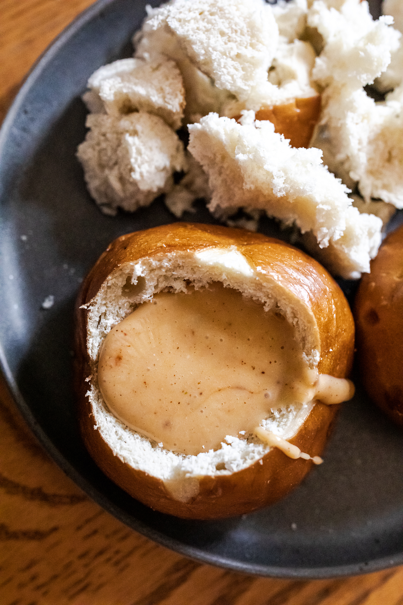 - Serve with torn up warm soft pretzels or pretzel rolls.