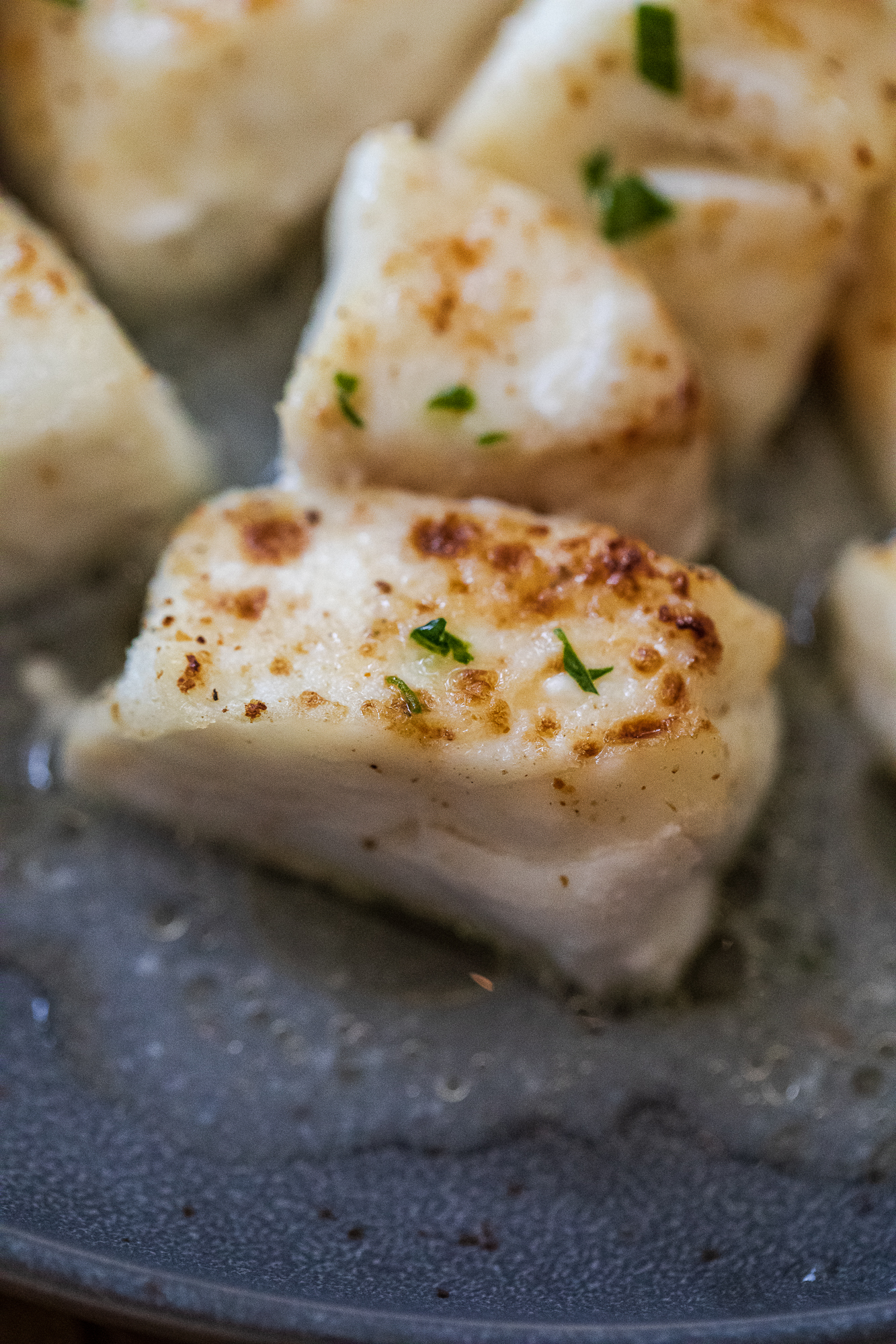 - Cube the fish - Cube up your fish into 1 - 1 ½ inch cubes.