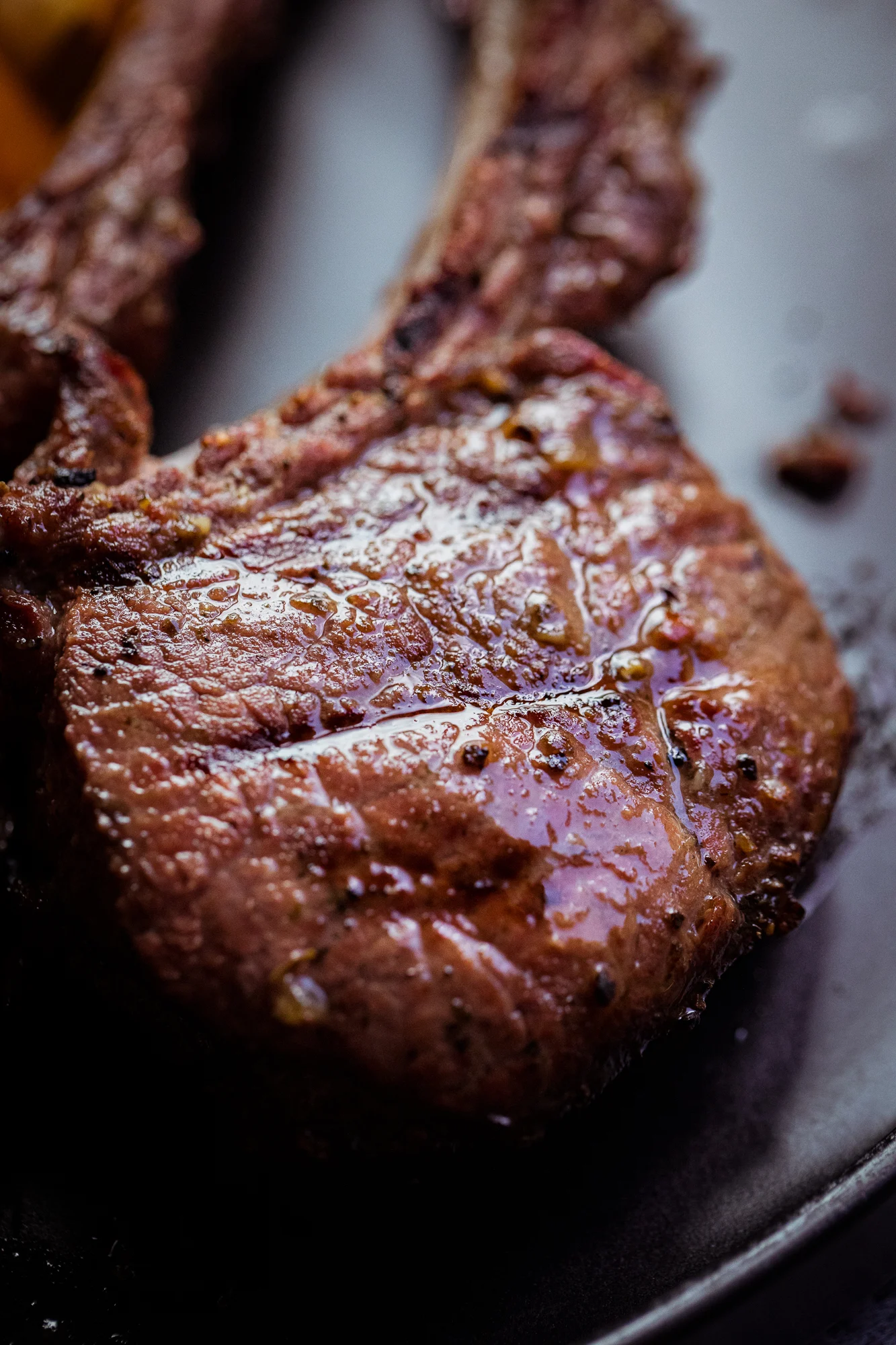 - Season the chops on both sides with the salt, pepper, and Wild Game rub.