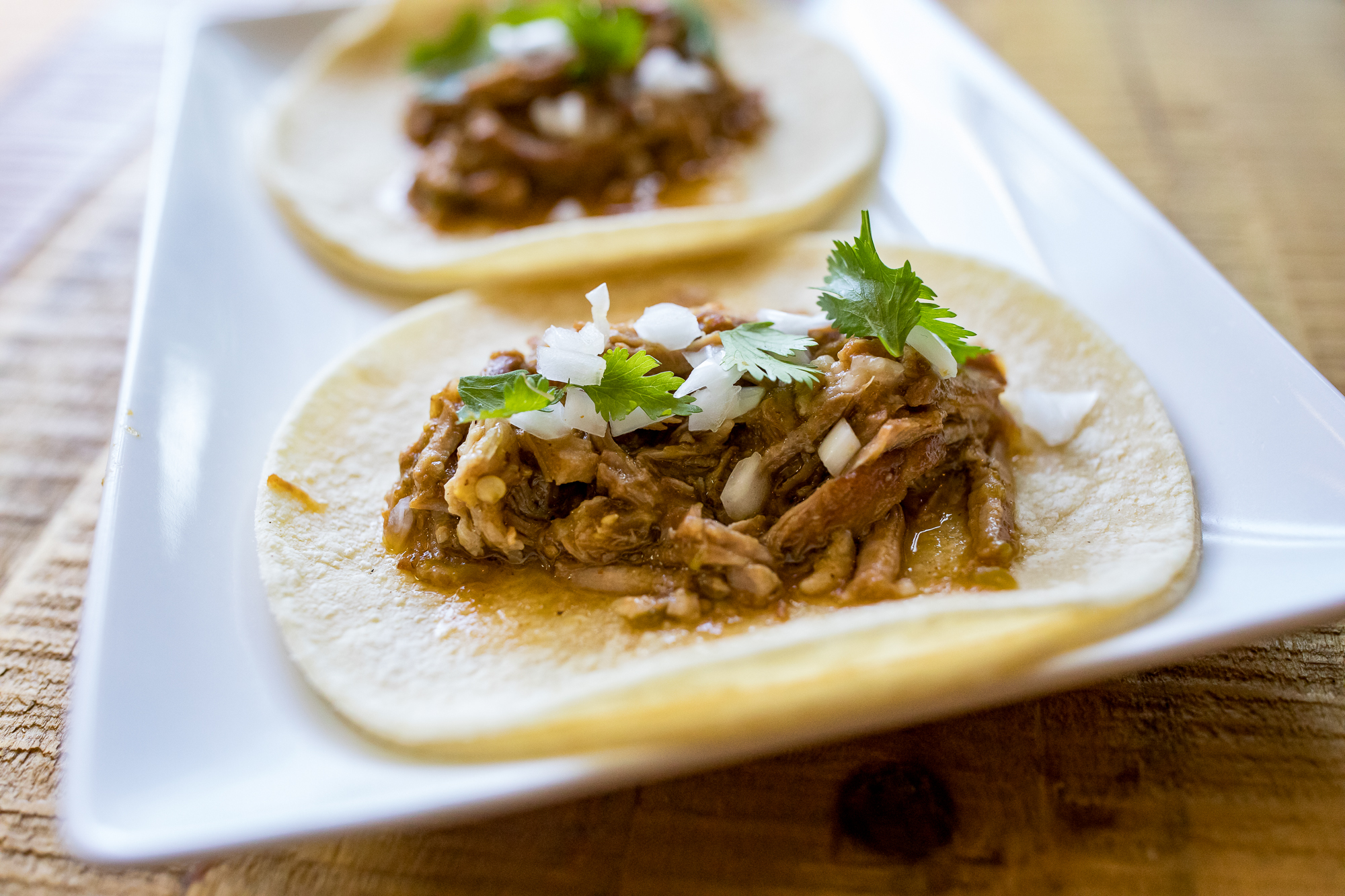 - Shred with forks, load up into heated corn tortillas, and top with your favorite taco toppings. We like fresh diced onion and cilantro.