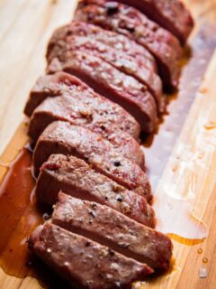 - Remove and let rest for a minute before slicing thinly against the grain.