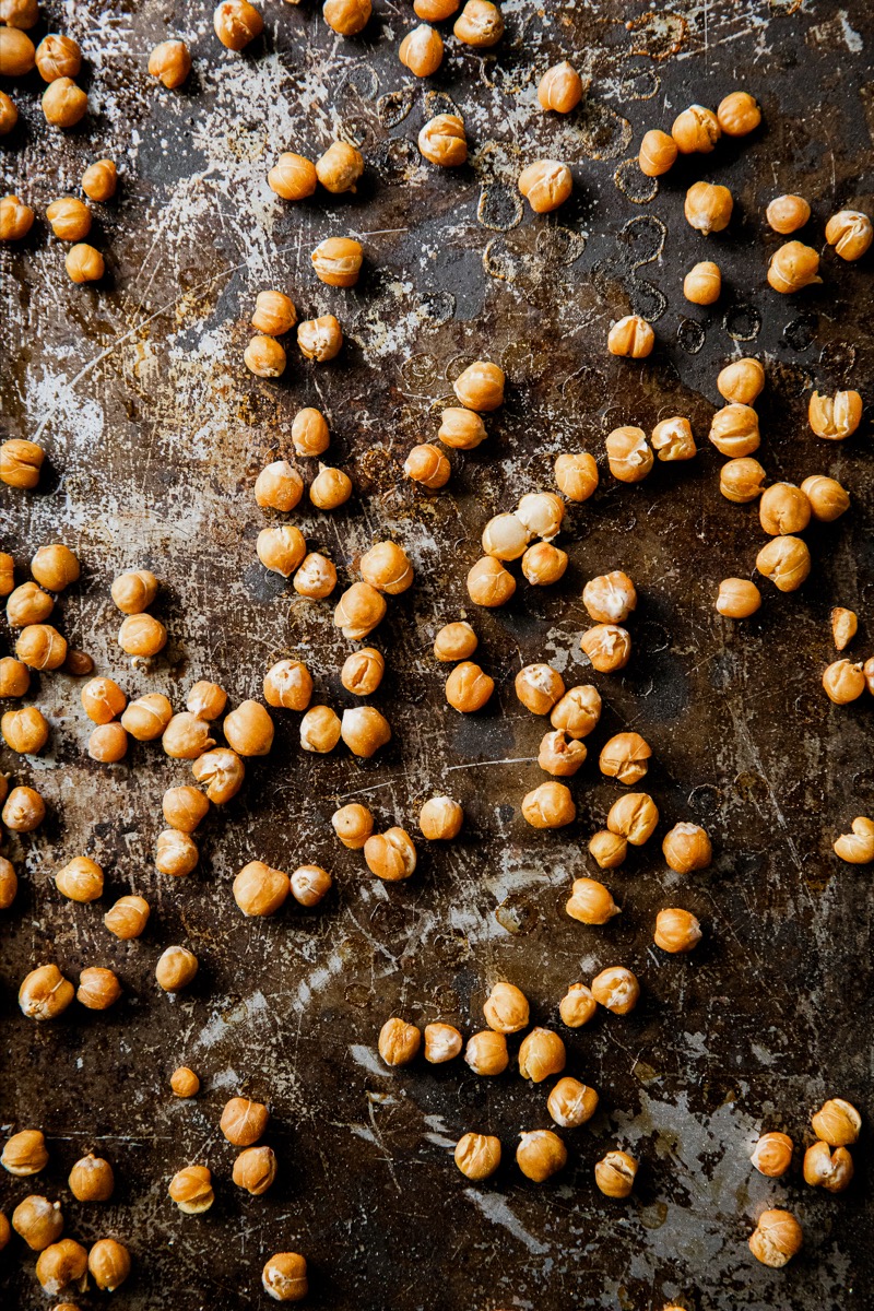 - Roast - Roast the drained chickpeas on a lightly oiled, grill-safe baking sheet for 20 minutes until lightly browned.
