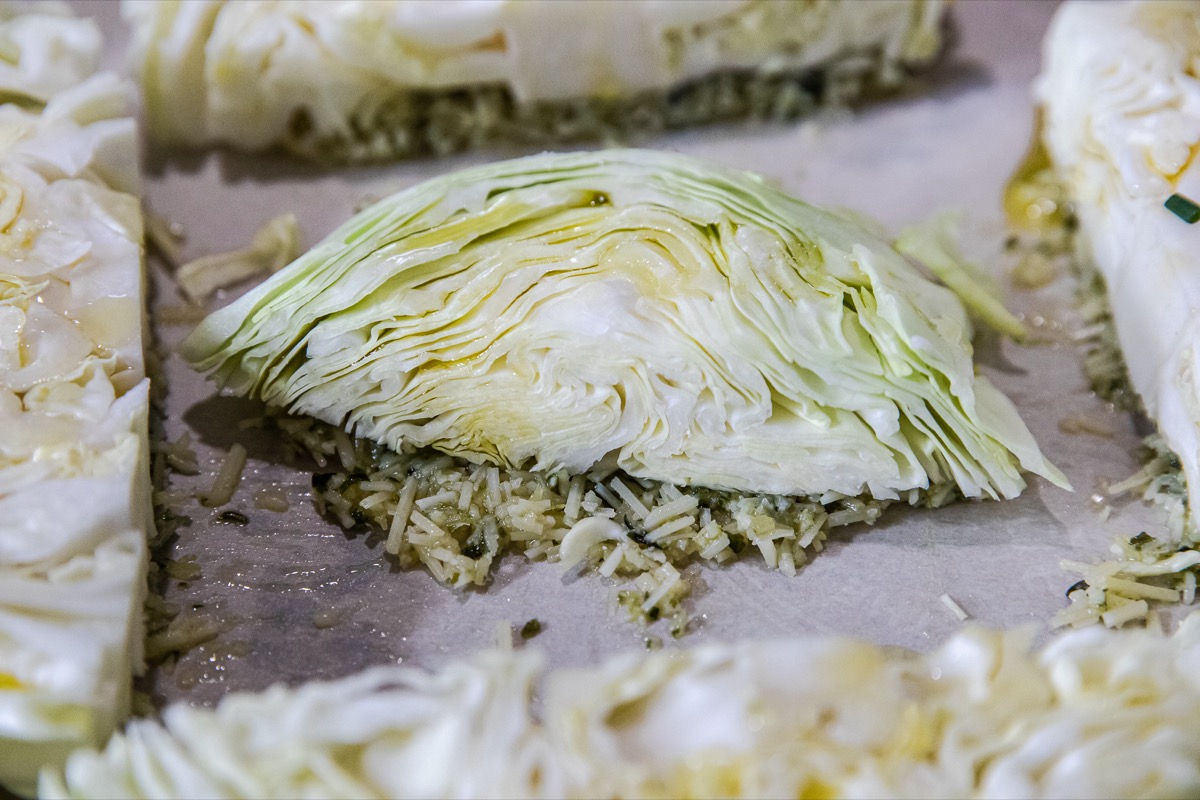 - Prepare Cabbage Steaks: Slice the cabbage into 1-inch thick steaks and lay them on a baking sheet lined with parchment paper.