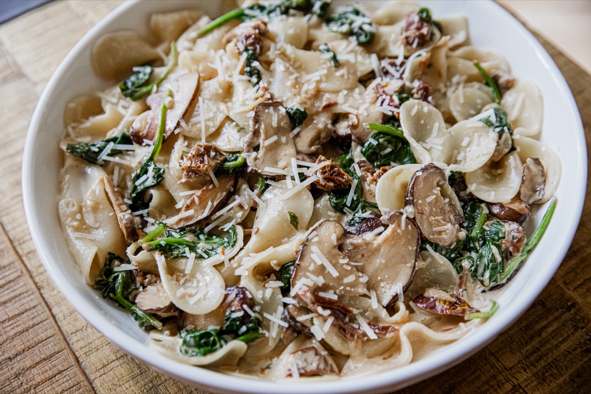 You can substitute the crimini mushrooms with any mushroom variety. For a lighter sauce, use half-and-half instead of heavy cream, or swap spinach for kale for a different texture.