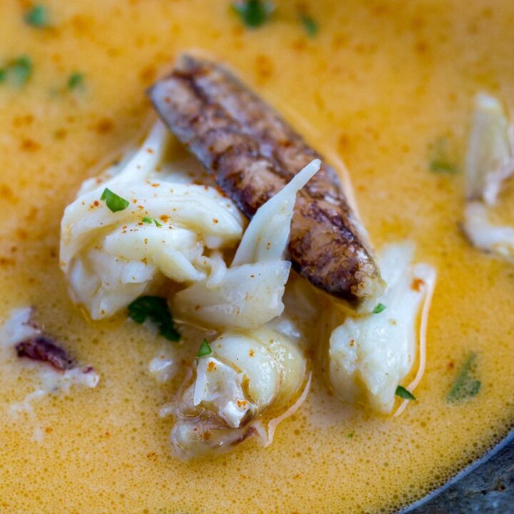 This spicy, flavorful seafood boil is the perfect fancy meal to make at home! Pick up some fresh Dungeness and some colossal shrimp and go to town and skip the take out and expensive restaurant bill!