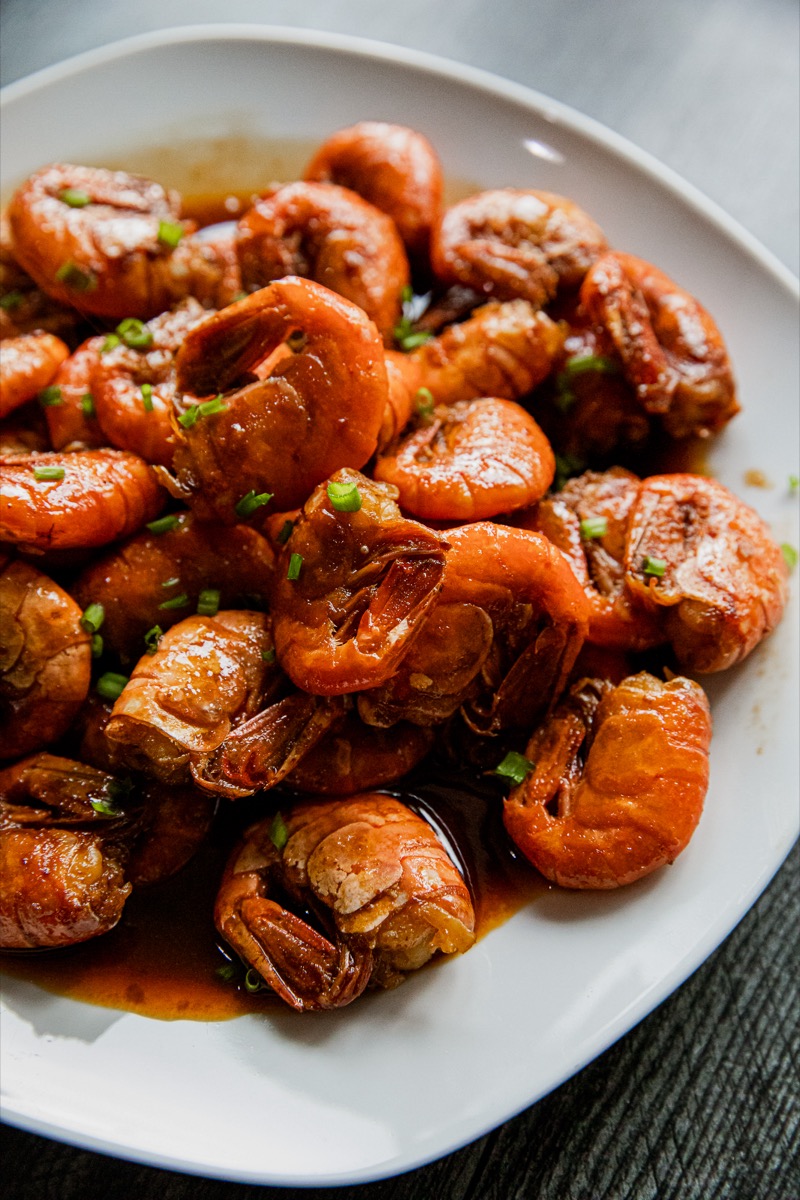 This simple Ginger Scallion Shrimp recipe is a bold, savory dish with big, bold flavors, fresh chilis and the aromatics will fill your house. The combination of fresh ginger, garlic, and shallots are a classic match, and butter and brown sugar help make a rich, caramelized coating. This recipe is fast AND easy to make, making it perfect for weeknight dinners or entertaining guests.
