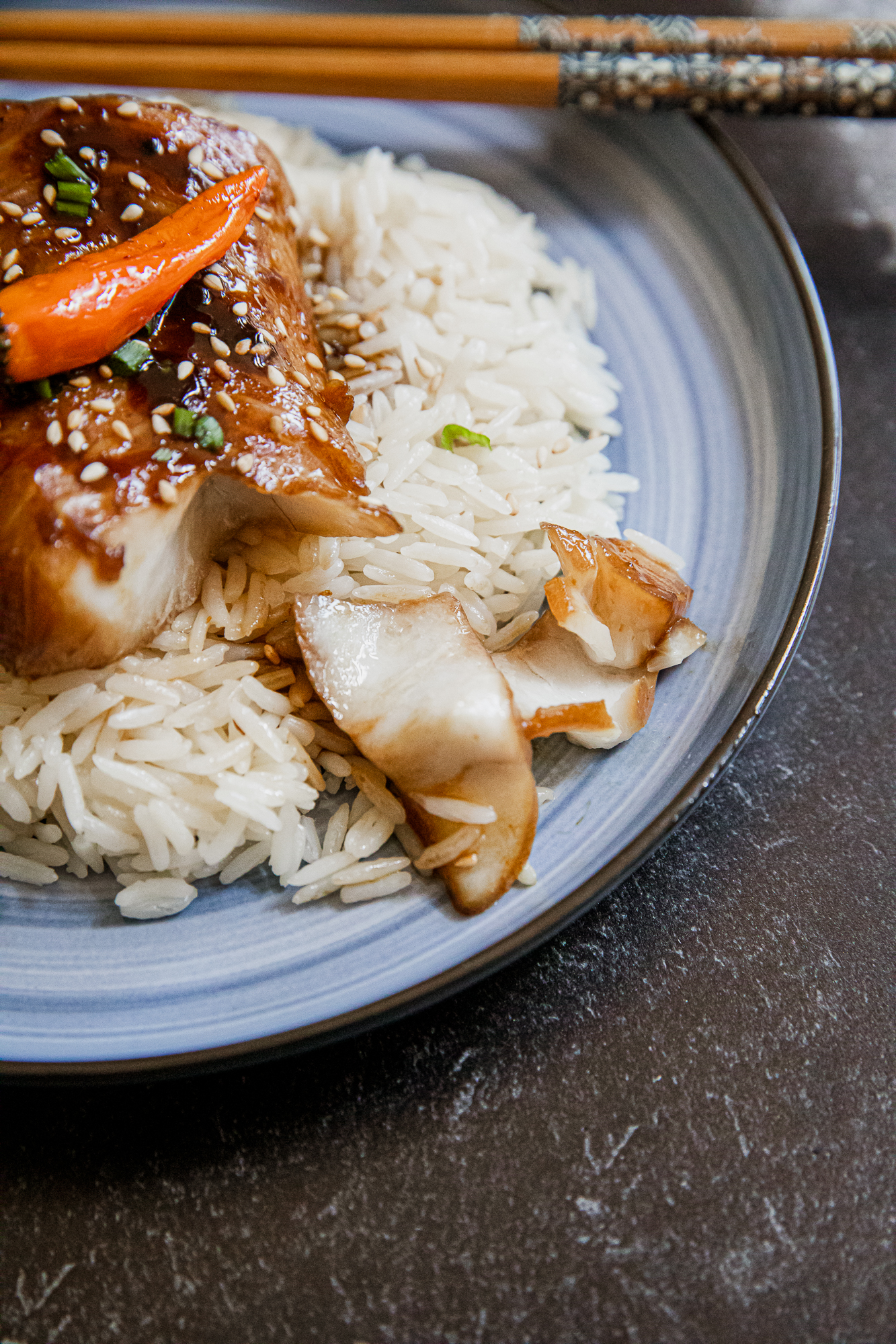 - Enjoy – Remove the fish from the saucepan, spoon some of the cooking liquid glaze over the fillets, and serve over rice (or your preferred base). Garnish if you like with chopped scallions or sesame seeds.