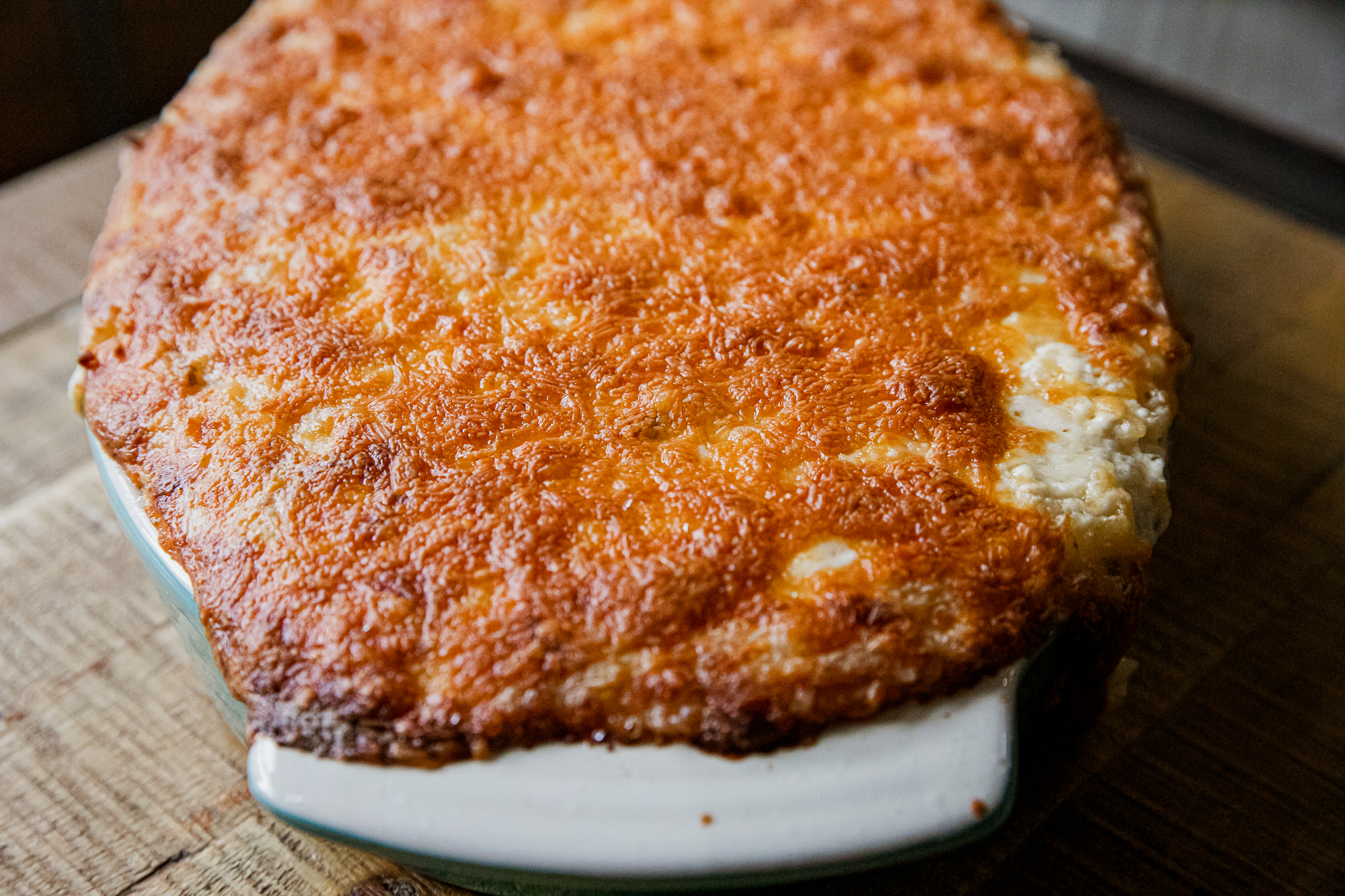 - Place the baking dish into the preheated Traeger, and let cook for 45 minutes, or until everything is bubbly and the top is melted and starting to lightly brown.