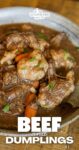 There’s nothing like a big pot of Beef and Dumplings to bring everyone to the table! This soup/stew cross has tender chunks of chuck roast, slow-simmered in a rich broth with garlic, herbs, and wine, then loaded up with carrots and fluffy homemade dumplings.