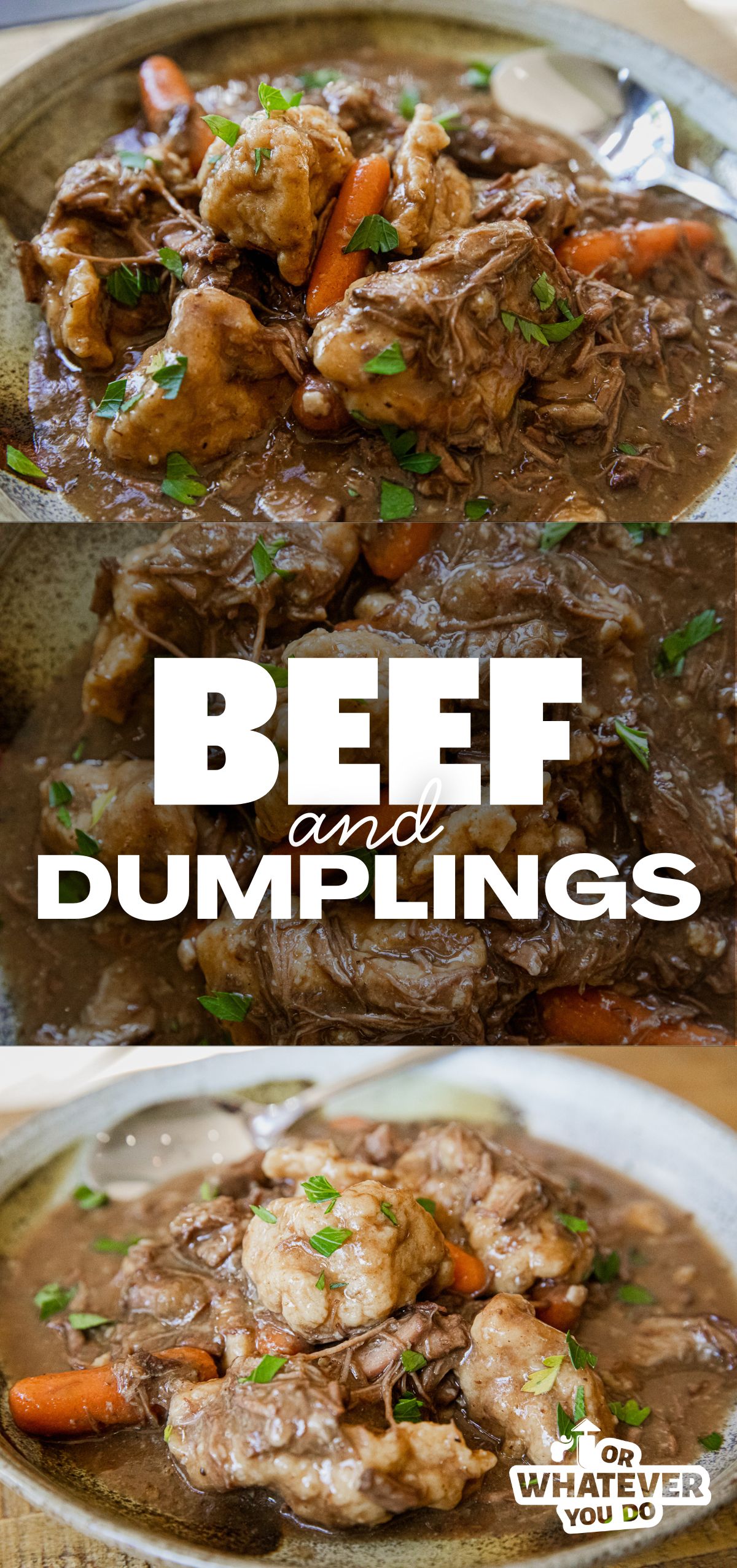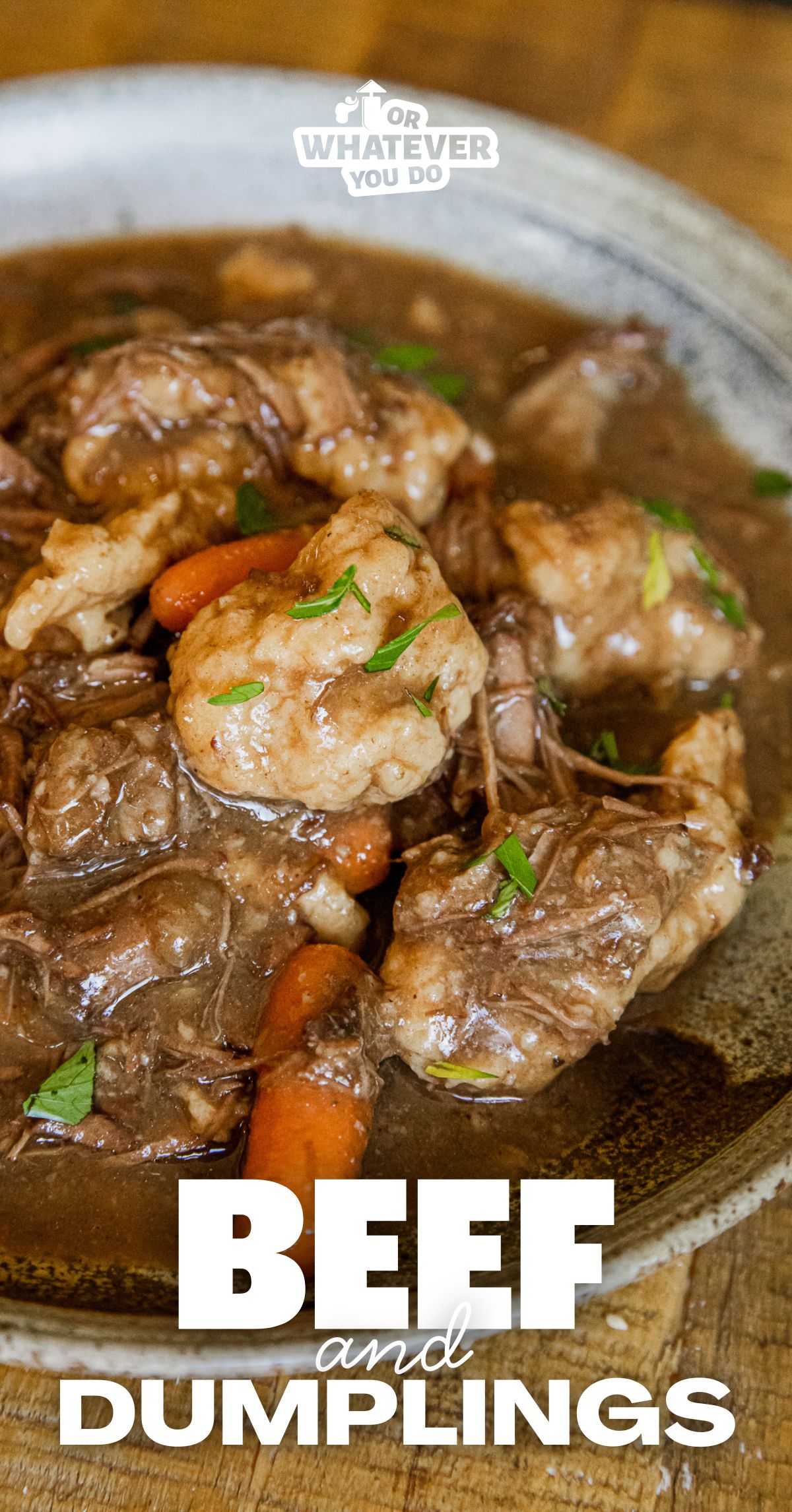 Your whole family will love this big pot of beef and dumplings! Homey, comforting, and with lots of gravy, this is a weekend win and works great for meal prep, too!